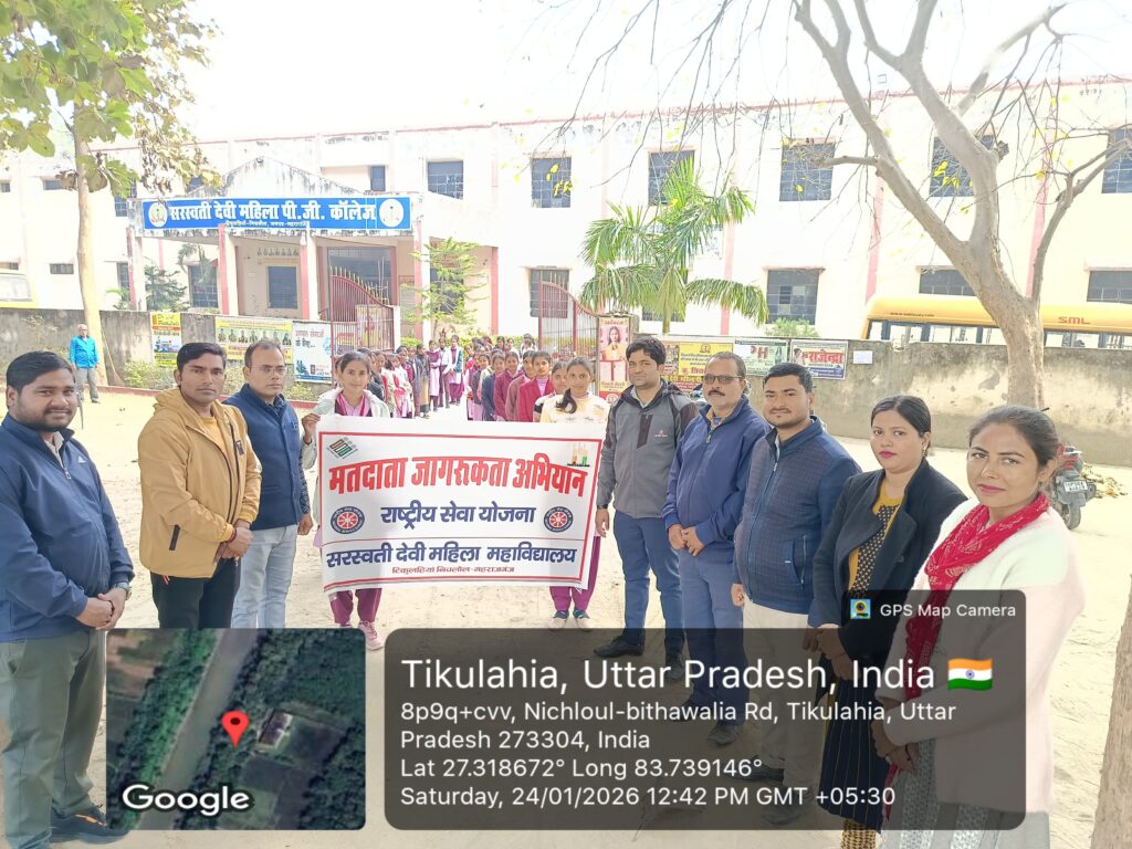 निचलौल/महराजगंज। दिनांक 24 जनवरी 2026 को सरस्वती देवी महिला महाविद्यालय टिकुलहिया निचलौल-महाराजगंज में राष्ट्रीय सेवा योजना के रानी लक्ष्मीबाई इकाई द्वारा महाविद्यालय में मतदाता जागरूपता दिवस कार्यक्रम का आयोजन किया गया।