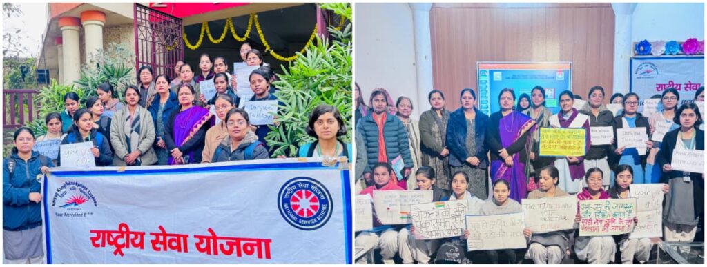 वर्ष 2026 के राष्ट्रीय विषय “मेरा भारत, मेरा वोट” और टैगलाइन “भारतीय लोकतंत्र के केंद्र में नागरिक” के तहत, इस कार्यक्रम ने लोकतंत्र के ढांचे को मजबूत करने में प्रत्येक वोट के महत्व पर ध्यान केंद्रित किया। कार्यक्रम की शुरुआत मतदाता शपथ के साथ हुई। प्राचार्या प्रो. मंजुला उपाध्याय के नेतृत्व में, छात्राओं, शिक्षिकाओं एवं कर्मचारियों ने “धर्म, मूलवंश, जाति, समुदाय या भाषा के आधार पर प्रभावित हुए बिना, निर्भीक होकर हर चुनाव में मतदान करने” का संकल्प लिया। उत्तर प्रदेश भारत का एक महत्वपूर्ण प्रदेश है। तत्पश्चात् राष्ट्रीय सेवा योजना की कार्यक्रम अधिकारियों के नेतृत्व में स्वयंसेविकाओं ने मतदाता जागरूकता रैली निकालकर लोगों को मतदान के प्रति जागरूक किया। रैली का नाका हिंडोला से होते हुए महाविद्यालय प्रांगण में सफल समापन हुआ। इसी क्रम राष्ट्रीय सेवा योजना एक स्लोगन प्रतियोगिता का भी आयोजन किया गया। प्रतियोगिता के निर्णायक मंडल में जंतु विज्ञान विभाग की श्रीमती विमला बिंद एवं वनस्पति विज्ञान विभाग की डॉ. स्नेहा चौधरी शामिल रहीं। प्रतियोगिता का परिणाम इस प्रकार है – प्रथम – प्रियंका भारती (बी. एड. द्वितीय वर्ष ) द्वितीय- अर्चना प्रजापति (बी. कॉम. द्वितीय वर्ष) तृतीय – सौम्या मिश्रा ( बी. एड. द्वितीय वर्ष) सांत्वना पुरस्कार- सना कुरैशी (बी. ए. द्वितीय वर्ष)