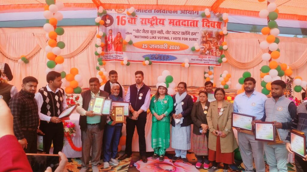 आज 16वें राष्ट्रीय मतदाता दिवस के अवसर पर कलेक्टेªट परिसर से आहूत मतदाता जागरूकता रैली को मुख्य विकास अधिकारी सान्या छाबड़ा ने हरी झण्डी दिखाकर रवाना किया, रैली कलेक्टेªट से प्रारम्भ होकर सोलजर बोर्ड चौराहा, सिनेमा चौराहा होते हुए आई0टी0 आई0 कालेज परिसर में समाप्त हुई। आईटीआई परिसर में 16वें मतदाता दिवस के अवसर पर आयोजित भव्य कार्यक्रम का उद्घाटन जिलाधिकारी अनुनय झा ने दीप प्रज्जवलित कर किया तथा उपस्थित जनसमूह को मतदाता दिवस पर शपथ दिलाते हुए कहा कि हम भारत के नागरिक लोकतंत्र में अपनी पूर्ण आस्था रखते हुए यह शपथ लेते है कि हम अपने लोकतांत्रिक परम्पराओं की मर्यादा को बनाये रखेंगे तथा स्वतंत्र, निष्पक्ष एवं शांतिपूर्ण निर्वाचन की गरिमा को अक्षुण्ण रखते हुए, निर्भीक होकर, धर्म, वर्ग, जाति, समुदाय, भाषा अथवा अन्य किसी निर्वाचनों में अपने मताधिकार का प्रयोग करेंगें, इस शपथ को सभी उपस्थित लोगों ने दोहराया। जिलाधिकारी ने कहा कि देश में मतदान करने का अधिकार हर मतदाता को है इसलिए देश को नई दिशा देने, सशक्त बनाने एवं आर्थिक रूप से मजबूत बनाने हेतु प्रत्येक निर्वाचन में अपने एवं पूरे परिवार के साथ मतदान अवश्य करें। कार्यक्रम में जिलाधिकारी ने विशेष प्रगाढ़ पुनरीक्षण में उत्कृष्ट कार्य करने वाले बीएलओ, सुपरवाइजर, दिव्यांगजनो, गणमान्य व्यक्तियों को प्रशस्ती पत्र प्रदान कर सम्मानित किया। इस अवसर पर लखनऊ से आये सांस्कृतिक दल ने रंगारंग कार्यक्रम प्रस्तुत किया जिसकी सभी ताली बजाकर प्रशंसा की। रैली एवं कार्यक्रम में उप जिलाधिकारी सदर सुशील कुमार मिश्रा, अतिरिक्त मजिस्टेªट अरूणिमा श्रीवास्तव, पूनम भारस्कर, कृषि उप निदेशक सतीश कुमार पाण्डे, अर्थ एवं संख्याधिकारी राम प्रकाश वर्मा, प्रभारी जिला सूचना अधिकारी दिव्या निगम, जिला युवा अधिकारी प्रतिमा वर्मा, बीएलओ, सुपरवाइजर, गणमान्य व्यक्ति एवं भारी संख्या में एनसीसी, स्काउट के छात्रों सहित विभिन्न विद्यालयों के छात्र- छात्राओं ने प्रतिभाग किया। ——————————-