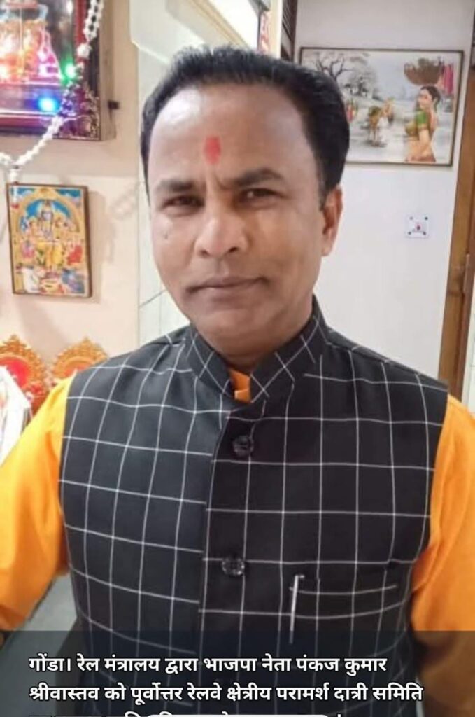 रेलवे यात्रियों एवं रेल कर्मचारीयों तथा समाज के विभिन्न सामाजिक संगठनों के प्रति लगन को देखते हुए केंद्रीय रेल मंत्री अश्विनी वैष्णव द्वारा भाजपा नेता पंकज कुमार श्रीवास्तव को पुनः जेड.आर.यू.सी.सी.एन.ई.आर. का सदस्य मनोनीत करने पर कार्यकर्ताओं एवं शुभ चिंतकों द्वारा मिष्ठान वितरण किया गया।भाजपा नेता पंकज कुमार श्रीवास्तव को रेलवे हित में किए गए अच्छे कार्यों हेतु पांचवीं बार पूर्वोत्तर रेलवे क्षेत्रीय परामर्श दात्री समिति का सदस्य बनाया गया एमडी न्यूज ब्यूरों गोंडा- अजीत कुमार यादव