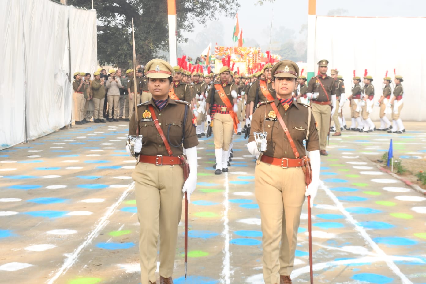परेड में कुल 08 प्लाटून में महिला आरक्षी प्रशिक्षु तथा झांकियों में मोटरसाइकिल दस्ता, डायल 112, विशेष महिला सुरक्षा दल, अग्मिशमन विभाग, श्वान दल, कृषि विभाग, पर्यावरण एवं जलवायु परिवर्तन विभाग, बेसिक शिक्षा विभाग, स्वास्थ्य विभाग, उद्योग विभाग, तथा जनपद की विशिष्ट पहचान रामपुरी चाकू पर आधारित झांकियों के साथ-साथ स्कूली बच्चों द्वारा प्रस्तुत झांकियां शामिल रही ।
