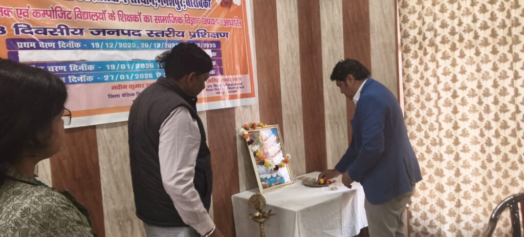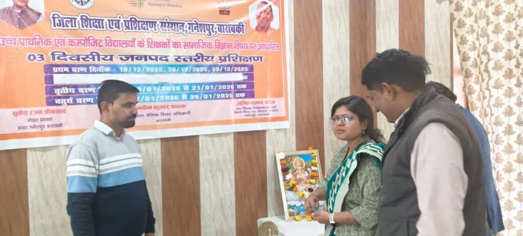 बाराबंकी: समाज के क्रमिक विकास और अन्य रीतियों की समझ विकसित करता है सामाजिक विज्ञान विषय, डायट गणेशपुर में मंगलवार को शुरू हुए तीन दिवसीय सामाजिक विज्ञान विषय प्रशिक्षण के उद्घाटन सत्र पर बोलते हुए प्रवक्ता अमित राय ने कहा,उनके अनुसार बेसिक शिक्षकों की ट्रेनिंग उनके कौशल के विकास को वर्धित करती है, तीन दिवसीय ट्रेनिंग में शिक्षक रचनात्मकता और आधुनिक विधियों का समन्वय करना सीखेंगे। नोडल प्रवक्ता सुकेश रंजन श्रीवास्तव के अनुसार वर्तमान सत्र में फतेहपुर, देवा, हरख और सिरौलीगौसपुर के उच्च प्राथमिक और कंपोजिट विद्यालय के शिक्षक प्रतिभाग कर रहे है। प्रशिक्षण सत्र में अमित कुमार प्रवक्ता समाजकार्य, सुकेश रंजन श्रीवास्तव प्रवक्ता सामाजिक विज्ञान,श्रीमती शिखा साहू प्रवक्ता गणित और पीएमश्री जीआईसी बाराबंकी के सहायक अध्यापक जितेन्द्र कुमार उपस्थित रहे।मंडल ब्यूरो चीफ अयोध्या तेज बहादुर शर्मा।