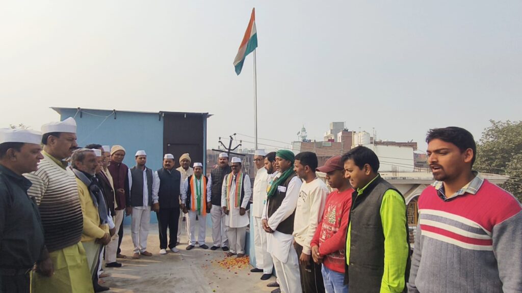 बनारस सुभान अली की रिपोर्ट। प्रकाशनार्थ*मुगलसराय कालीमहाल चौराहा स्थित कैम्प कार्यालय पर रामजी गुप्ता पूर्व अध्यक्ष शहर कांग्रेस कमेटी मुगलसराय ने 77 वें गणतंत्र दिवस पर राष्ट्रीय ध्वज फहराया। उक्त अवसर पर कांग्रेसजनो ने राष्ट्र गान गाया व कांग्रेसजनो ने संविधान, लोकतंत्र और समानता के मूल्यों को सशक्त करने का संकल्प लिया। तत्पश्चात एक दुसरे को मिठा खिलाकर खुशी मनाया। कार्यक्रम में मुख्यरूप से पूर्व शहर रामजी गुप्ता, आंनद शुक्ल,नन्द गोपाल सिंह, नेहाल अख्तर, अभिषेक कुमार मिश्रा,राकेश सिंह,संजय मिश्रा,संजय तारिक अब्बास, डा.नंदलाल प्रसाद,हम्मीर शाह जायसवाल, मृत्युंजय शर्मा,मो• नईम कन्हैया केशरी,अनवर सादात,फैयाज अंसारी, महेश मंडल, रामसेवक पटेल,राकेश राज,मनीष भारती, शाबिर राईन,संजय पांडेय,इमरान आलम, रमेश सिंह रामा, मोहन गुप्ता,नितेश जैस, हरी शंकर पाठक, मो• राशिद,अखिलेश यादव,दिपक गुप्ता,प्रेेमनाथ जायसवाल,सुदर्शन गुप्ता, मंटू शर्मा,प्रवीण कुमार मु•शाबिर आदि कांग्रेसजन उपस्थित थे।*रामजी गुप्ता**सदस्य* उत्तर प्रदेश कांग्रेस कमेटी *पूर्व अध्यक्ष* शहर कांग्रेस कमेटी मुगलसराय