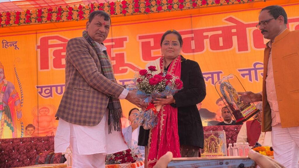 गोंडा- आज विधानसभा गौरा के अंतर्गत एक विशाल हिंदू सम्मेलन का आयोजन किया गया जिसमें हिंदू सनातन की गूंज दिखाई दिया यह विशाल हिंदू सम्मेलन श्रीवास्तव मैरिज हॉल गौरा चौकी में आयोजित किया गया कार्यक्रम में मुख्य अतिथि /मुख्यवक्ता के रूप में मा०श्री अभय जी धर्म जागरण प्रमुख उत्तर क्षेत्र, विशिष्ट अतिथि-सुबुही खान अधिवक्ता सुप्रीम कोर्ट, महंत श्री चिन्मयानंद महाराज कटरा कुटी धाम अयोध्या, महंत श्री छोटे बाबा सोनबरसा पोखरा मंदिर, कार्यक्रम में सभी साधु संतों को क्षेत्रीय विधायक प्रभात कुमार वर्मा द्वारा अंग वस्त्र व मोमेंटम देकर सम्मानित किया गया सभी वक्ताओं ने क्रमबद्ध तरीके से हिंदू सनातन धर्म के बारे में विस्तार से सारगर्भित विचार प्रस्तुत किया पूरा पंडाल भगवा रंग से रंग दिखा आए हुए हिंदू पुरी लगन के साथ विचार सुना।