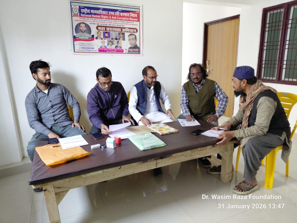 * एमडी न्यूज़ बहुआयामी समाचार न्यूज़ चैनल सहायक ब्यूरो चीफ रफीउल्लाह खान की रिपोर्टयूसुफपुर (गाज़ीपुर)।राष्ट्रीय मानवाधिकार एण्ड एंटी करप्शन मिशन द्वारा आयोजित महा सदस्यता अभियान का भव्य शुभारंभ शनिवार, 31 जनवरी 2026 को प्रातः 11:00 बजे जे.बी. आँख अस्पताल, बेलाल मस्जिद गली, फ़लमंडी, यूसुफपुर में किया गया।कार्यक्रम का शुभारंभ संगठन के राष्ट्रीय अध्यक्ष डॉ. वसीम रज़ा अंसारी द्वारा किया गया। इस अवसर पर उन्होंने अपने संबोधन में मानवाधिकार संरक्षण एवं भ्रष्टाचार के विरुद्ध जन-जागरूकता को समाज के लिए अत्यंत आवश्यक बताते हुए अधिक से अधिक लोगों को संगठन से जुड़ने का आह्वान किया।कार्यक्रम में संगठन के पदाधिकारी, कार्यकर्ता एवं समाजसेवी बड़ी संख्या में उपस्थित रहे। अभियान के माध्यम से लोगों को संगठन की नीतियों, उद्देश्यों एवं सामाजिक दायित्वों से अवगत कराया गया तथा सदस्यता ग्रहण कर उन्हें सक्रिय रूप से समाजसेवा से जुड़ने के लिए प्रेरित किया गया।इस अवसर पर मोहम्मद इस्माइल अंसारी उर्फ अहकम गाज़ीपुरी, जावेद अहमद, मोहम्मद जाहिद, डा. वैस अहमद खान, सरफराज अहमद आसी सहित अनेक लोगों ने संगठन की सदस्यता ग्रहण की।कार्यक्रम का मुख्य उद्देश्य अधिक से अधिक नागरिकों को संगठन से जोड़कर मानवाधिकार संरक्षण एवं भ्रष्टाचार विरोधी गतिविधियों को सशक्त बनाना रहा।कार्यक्रम की जानकारी देते हुए एडवोकेट महबूब आलम, प्रदेश सचिव, अधिवक्ता प्रकोष्ठ एवं दिलावर खान, तहसील सचिव मुहम्मदाबाद ने बताया कि संगठन निरंतर जनहित से जुड़े कार्यक्रमों के माध्यम से समाज में जागरूकता फैलाने का कार्य कर रहा है।अंत में संगठन की ओर से सभी सम्मानित नागरिकों, समाजसेवियों एवं युवाओं का आभार व्यक्त किया गया तथा भविष्य में भी इस तरह के अभियानों में सक्रिय सहभागिता की अपील की गई।