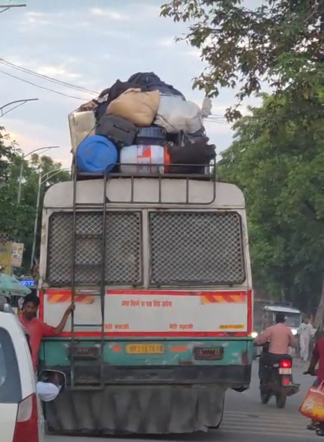 बसों की छतों पर लदा भारी सामान, जंगल से घिरे मार्ग पर हर पल मंडरा रहा बड़ा हादसा।