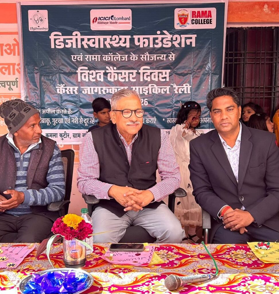 आज दिनांक 4 फरवरी 2026 को विश्व कैंसर दिवस पर डीजी स्वास्थ्य टेलीमेडिसिन सेंटर कमला कुटीर, ग्राम करुआ पंचायत घर में रामा कॉलेज एवं क्षेत्रीय पंचायतों के सहयोग से कैंसर जागरूकता कार्यक्रम एवं साइकिल रैली का आयोजन किया गया। इस कार्यक्रम में अधिक संख्या में ग्रामीणों,छात्रों एवं जनप्रतिनिधियों ने भाग लिया।