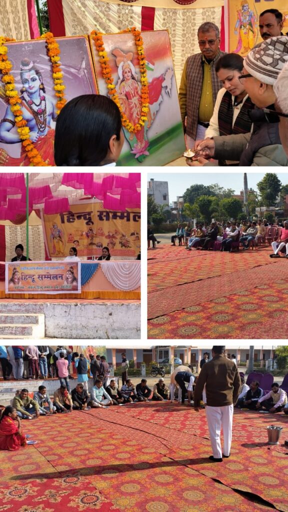 लखीमपुर खीरी जनपद के मितौली कस्बे में स्थित राजा लोने सिंह इंटर कॉलेज में हिंदुओं को संगठित करने के उद्देश्य से आज दिनांक 8 फरवरी 2026 दिन रविवार को हिंदू समाज के लोगों के द्वारा हिंदू सम्मेलन का आयोजन किया गया। कार्यक्रम का शुभारंभ मुख्यवक्ता लक्ष्मी पांडेय द्वारा भारत माता एवं श्री राम के चरणों में दीप प्रज्ज्वलन तथा पुष्पार्चन करते हुए किया गया। अतिथियों को अंगवस्त्र देकर सम्मानित किया गया। कार्यक्रम में हिंदू सम्मेलन को आयोजित करने के उद्देश्य से अवगत कराया गया। समाज में फैली बुराईयों को दूर करने के लिए प्रेरित किया गया। कार्यक्रम की मुख्य वक्ता मातृशक्ति लक्ष्मी पांडेय ने राष्ट्रीय स्वयंसेवक संघ के पंच उद्देश्यों पर प्रकाश डालते हुए संबोधित किया। वृन्दावन धाम से आई हुई पूर्ण कालिक साध्वी विष्णु ने गौ रक्षा पर चिंता जताते हुए गौ वंश की दुर्दशा को व्यक्त किया। आए हुए लोगों ने गौ रक्षा का संकल्प भी लिया। कार्यक्रम का समापन कल्याण मंत्र के साथ किया गया।