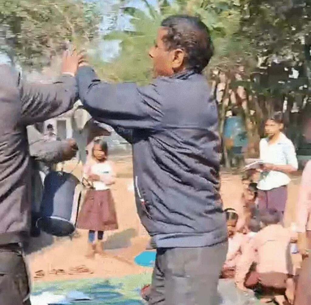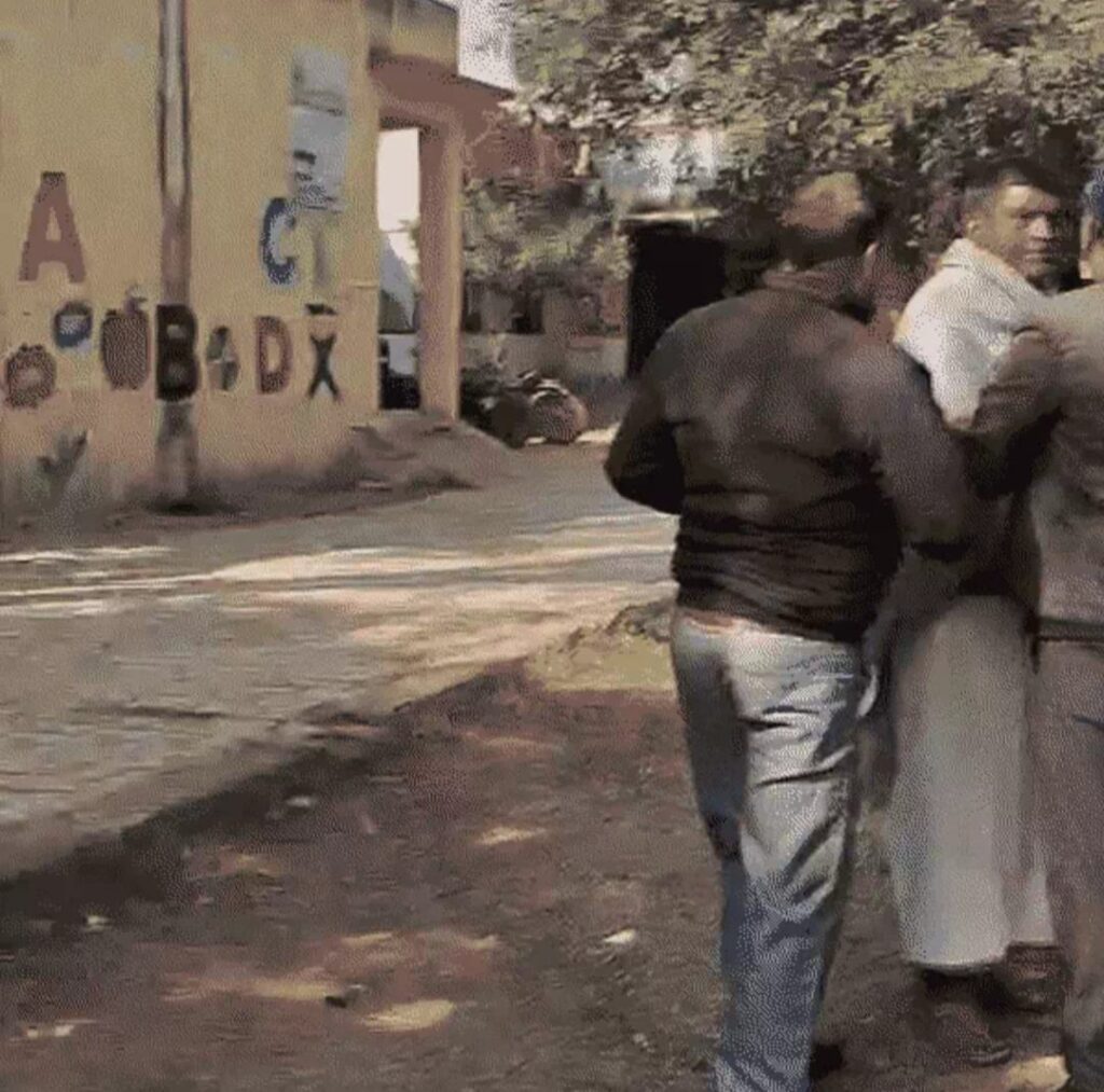 1 मिनट 53 सेकेंड के वीडियो में बच्चे जमीन पर बैठकर पढ़ते नजर आ रहे हैं। बीएलओ के हाथ में टिफिन दिखाई दे रहा है। इसी दौरान प्रधान और उसका बेटा बीएलओ से मारपीट करते दिखते हैं। पहले बेटे ने बीएलओ को एक थप्पड़ मारा, इसके बाद पूर्व प्रधान ने भी उसे थप्पड़ जड़ दिया।
