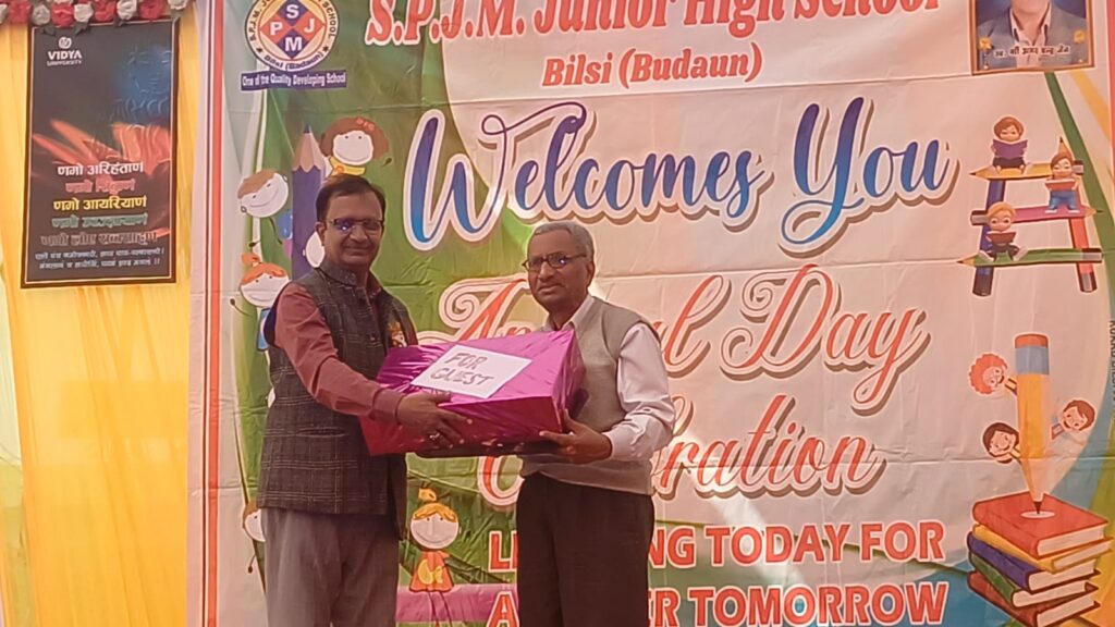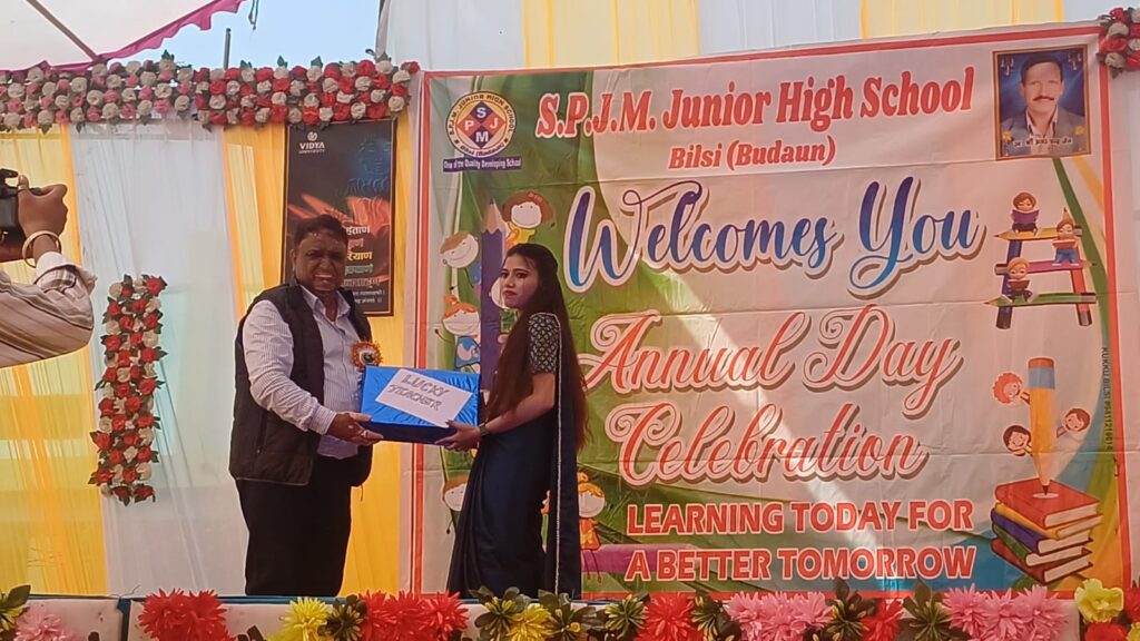 बिल्सी। नगर के एसपीजेएम जूनियर हाईस्कूल का बुद्धवार को 22वां वार्षिकोत्सव धूमधाम से मनाया गया। यहां बच्चों ने धार्मिक-देश भक्ति गीतों के माध्यम से सांस्कृतिक कार्यक्रम पेश किए। साथ ही पिछले वर्ष में मेधावी रहे एवं विभिन्न प्रतियोगिताओं में सफल रहे छात्र-छात्राओं को अतिथियों द्वारा पुरस्कृत किया गया। प्रबंधक अमित कुमार जैन एवं शरत जैन मां सरस्वती चित्र के समक्ष दीप प्रज्ज्वलित कर कार्यक्रम शुभारंभ किया। इसके बाद भगवान गणेश एवं मां सरस्वती की वंदना पेश की। इसके बाद बच्चो ने यहां णमोकार मंत्र पेश किया। इसके बाद नन्हे-मुन्ने बच्चों ने वेलकम गीत पर काफी सुंदर ढंग से डांस किया। जिसने सभी का मनमोह लिया। पुलवामा हमले की विशेष प्रस्तुति बच्चों द्वारा देखने को मिली जिसने सभी को मंत्र मुग्ध कर दिया, बीच में देश के प्रधानमंत्री नरेंद्र मोदी जी के रूप में स्कूल के बच्चे की एंट्री हुई पूरा पंडाल तालिया से गूंज गया वार्षिकोत्सव के बीच-बीच में लकी ड्रा के माध्यम से लकी मम्मी,लकी टीचर मुस्कान,लकी स्टूडेंट आयुषी सक्सेना आदि का चयन कर सम्मानित किया गया। कार्यक्रम का संचालन शिक्षक मनोज सक्सेना ने किया वरिष्ठ कवि नरेंद्र मोहन गरल ने बच्चों का मार्गदर्शन कविता के माध्यम से किया । इसी बीच स्कूल के मेधावी एवं विभिन्न प्रतियोगिताओं में अव्वल रहे छात्र-छात्राओं को पुरस्कृत किया। इस मौके पर डायरेक्टर शरत कुमार जैन, अमिता जैन, प्रधानाचार्य रोहित शर्मा, अनिल जैन सोनी, चंद्रसेन महेश्वरी राकेश सोनी, दीपक चौहान, उमेश सक्सेना, मनोज सक्सेना आदि मौजूद रहे।