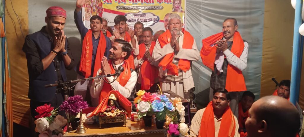 बाराबंकी:- सूरत गंज क्षेत्र ग्राम गौराचक में आयोजित पांच दिवसीय श्रीराम कथा का बुधवार को समापन हुआ। कथा के समापन मौके पर भी बड़ी संख्या में धर्मालुजनों ने पहुंचकर श्रीराम कथा का आनंद लिया।कथा के अंतिम दिन पांच दिनों तक राम कथा के जरिए से ज्ञान गंगा प्रवाहित करने वाले महाराज का सम्मान किया ने उन्हें पुष्पों का हार, शाल एवं श्रीफल भेंटकर उनका सम्मान किया। कथा समापन के अवसर पूर्णाहुति हवन और महाप्रसादी का भी आयोजन हुआ। चन्द्रशेखर ने श्रीकृष्ण सुदामा मित्रता श्रीकृष्ण के पूरे परिवार एवं राजा परीक्षित मोक्ष की कथा श्रवण कराई। आपने धर्मसभा में कहा कि राजा परीक्षित ने सुखदेव के मुखारविंद से जब तक उन्होंने कथा नहीं सुनी थी तब तक वे अपनी मृत्यु के भय से भयभीत थे। हालांकि सात दिवस तक पूरे मनोभाव से भगवान विष्णु के सभी अवतारों व श्रीकृष्णजी की लीलाएं सुनकर वे अपनी मृत्यु के भय से भयमुक्त हो गए राम कथा मनुष्य को भय से मुक्त करती है। मनुष्य जो कि सांसारिक मोह बंधनों से बंधा है, वह यदि श्रीमद् भागवत को मनोभाव से सुनता है तो उसको सभी मोह बंधनों से मुक्ति मिलती है तथा वह भगवान हरि के चरणों में स्थान पा लेता है। श्रीमद् भागवत के सभी अक्षर जीवन में नई प्रेरणा देते है। इस अवसर पर मोहन रावत, प्रधान बृजेश कुमार, पूर्व प्रधान सूरतगंज ब्लाक प्रमुख शेखर, गौरीकांत दीक्षित(आनन्द ), भाजपा नेता.लवलेश, डॉक्टर सूरज मनोज कुमार, कुवारे, विजय प्रताप, हरिओम, मुकेश कुमार, बबलू, विक्रम, प्रदीप, विजयपाल, अभिषेक, रामफेर, केशवराम, अनंतराम, राममिलन, कुट्टू, साधुराम, ओमकार, अमरेश आदि तमाम भक्त मौजूद रहे।