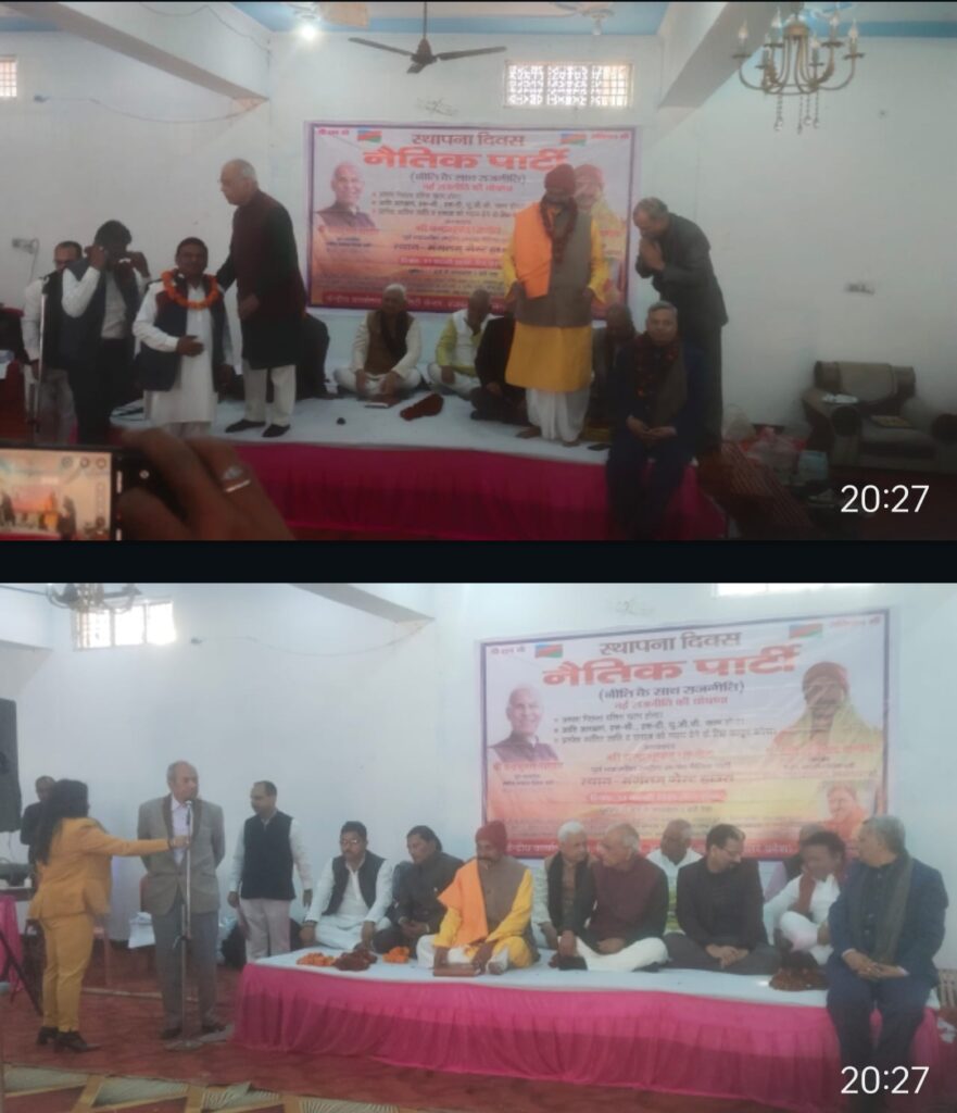 अयोध्या, 11 फरवरी, 2026, नैतिक पार्टी के राष्ट्रीय अध्यक्ष, पूर्व न्यायाधीश चन्द्र भूषण पाण्डेय ने नई राजनीति की घोषणा करते हुए कहा कि आज से जाति पर आधारित राजनीति को समाप्त किया जायेगा और व्याय पर आधारित राजनीति की स्थापना की जायेगी।