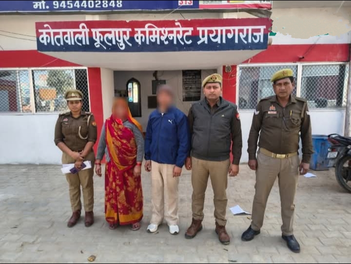 थाना फूलपुर में पंजीकृत मु0अ0सं0-50/2026 धारा 85/80/61(2)(क) भारतीय न्याय संहिता व 3/4 दहेज प्रतिषेध अधिनियम से संबंधित वांछित अभियुक्त रमेश कुमार पाल (33 वर्ष) पुत्र मोहन लाल पाल एवं समला देवी (50 वर्ष) पत्नी मोहन लाल पाल, निवासी ग्राम चक अब्दुल करीम उर्फ पूरे भुलई बाबूगंज, थाना फूलपुर, कमिश्नरेट प्रयागराज को पुलिस टीम ने गिरफ्तार किया।