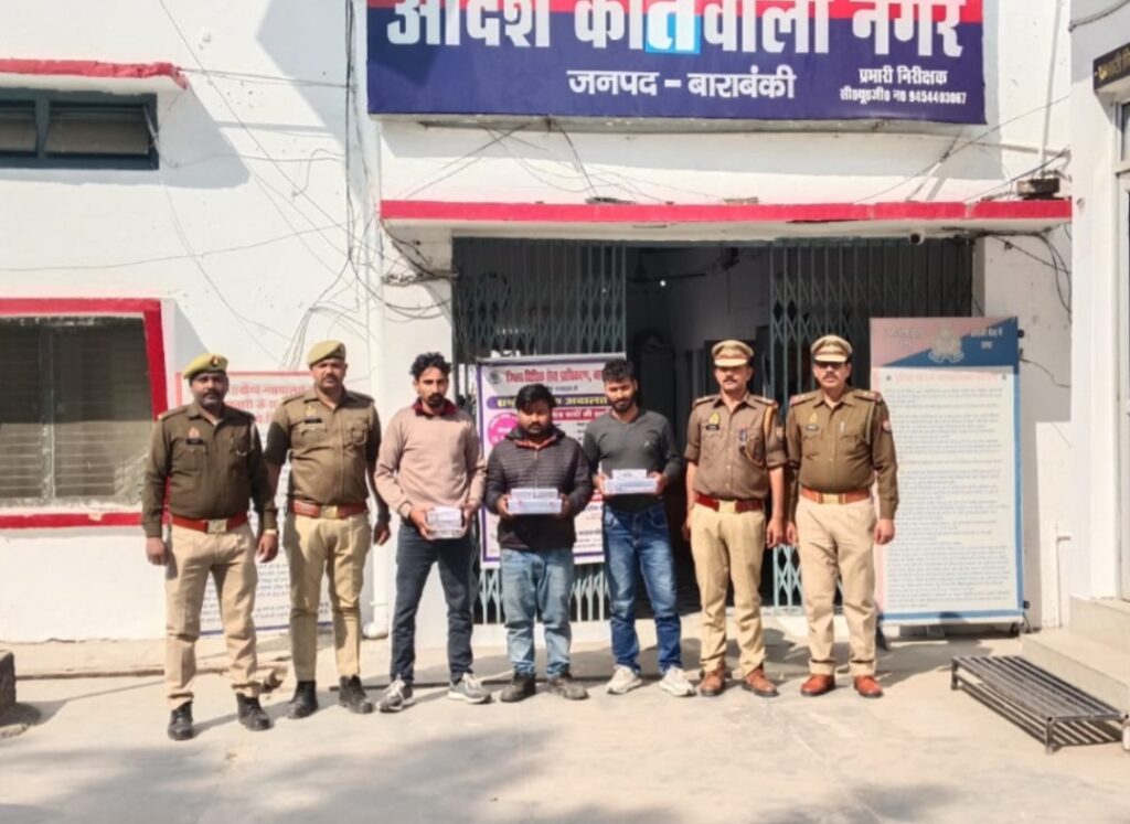 बाराबंकी पुलिस अधीक्षक बाराबंकी श्री अर्पित विजयवर्गीय द्वारा जनपद में अपराध पर प्रभावी नियंत्रण लगाने हेतु अपराधियों के विरुद्ध चलाये जा रहे अभियान के क्रम में स्वाट, सर्विलांस व थाना कोतवाली नगर द्वारा डिजिटल डेटा की मदद से आज दिनांक 11.02.2026 को अभियुक्तगण 1. शैलेन्द्र त्रिवेदी पुत्र सुन्दर त्रिवेदी निवासी ओसोनगर कन्नोसी थाना कृष्णानगर जनपद लखनऊ, 2. गौतम शुक्ला पुत्र स्व0 विजय शुक्ला निवासी ग्राम मझऊवा थाना त्रिलोकपुर जनपद सिद्धार्थनगर, 3. ऋषि कौरी पुत्र स्व0 बाबूलाल कौरी निवासी मोनिकापुरवा निकट रेखा अस्पताल थाना ठाकुरगंज जनपद लखनऊ को ओबरी जंगल के पास से गिरफ्तार किया गया। अभियुक्तगण के कब्जे से चोरी का 02 अदद पायल, 04 अदद बिछिया, 03 अदद चांदी का सिक्का, 1 लाख 30 हजार रुपये, घटना में प्रयुक्त अर्टिगा कार, एक अदद मोटरसाइकिल व 02 अदद देशी तमंचा .12 बोर मय 02 अदद जिंदा कारतूस बरामद किया गया। बरामदगी के आधार पर मु0अ0सं0 99/2026 धारा 3/25 आर्म्स एक्ट बनाम 1. गौतम शुक्ला, 2. ऋषि कोरी पंजीकृत किया गया।