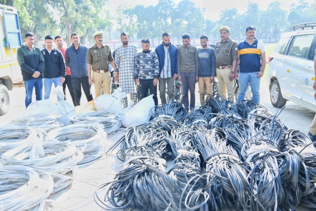 कब्जे/निशांदेही पर भारी मात्रा में एल्युमीनियम व तांबे के विद्युत तार (01 टन से अधिक), एक अदद अर्टिगा कार, एक अदद पिकप, 05 अदद मोटरसाइकिल, 3200/- रुपये नकद, 20 अदद कुर्सी व घटना कारित करने में प्रुयक्त उपकरण आदि सामान बरामद- पुलिस अधीक्षक बाराबंकी श्री अर्पित विजयवर्गीय द्वारा जनपद में अपराध एवं अपराधियों पर अंकुश लगाने तथा जनपद में हुई चोरी की घटनाओं का शीघ्र अनावरण करने व अभियुक्तों की गिरफ्तारी हेतु समस्त थाना प्रभारियों को निर्देशित किया गया। इसी क्रम में आज दिनांक 15.02.2026 को स्वाट/सर्विलांस व थाना सफदरगंज की संयुक्त पुलिस टीम द्वारा थाना सफदरगंज पर पंजीकृत मु0अ0सं0 12/2026 धारा 303(2)/317(2) बीएनएस व 136 विद्युत अधिनियम में प्रकाश में आये 05 अभियुक्तों/चोरों 1. इरफान अली उर्फ मुजफ्फर पुत्र सरवर अली निवासी ग्राम अफजलपुर पट्टी थाना शहजादनगर जनपद रामपुर, 2. वसीम पुत्र शफीक निवासी ग्राम रूड़की थाना बहेड़ी जनपद बरेली, 3. परवेज पुत्र नवी अहमद निवासी ग्राम गुलरिहा थाना बहेड़ी जनपद बरेली, 4. आरिफ पुत्र महमदू निवासी ग्राम महतोष थाना खजुरिया जनपद रामपुर, 5. आसिफ पुत्र शाबिर निवासी मोहल्ला नौगवा थाना सुनगढ़ी जनपद पीलीभीत को रसौली अण्डर पास से गिरफ्तार किया गया। अभियुक्तगण के कब्जे/निशांदेही पर 16 बण्डल एल्युमीनियम का विद्युत तार (लगभग 05 कुन्तल), 04 बण्डल तांबे का विद्युत तार (लगभग 1.09 कुन्तल), 09 बण्डल केबिल छिलका (लगभग 3.17 कुन्तल), 04 बोरी तांबे का तार छिलका (लगभग 1.05 कुन्तल), 03 अदद तार कटर, 01 अदद प्लास, 01 अदद छोटी बेल्डिंग मशीन, 01 अदद अर्टिगा कार (यूपी 22 बीटी 3748), 01 अदद महेन्द्र पिकप (यूपी 22 एटी 7621), 05 अदद मोटरसाइकिल, 20 अदद प्लास्टिक कुर्सी, 3200/- रुपये नकद बरामद किया गया।