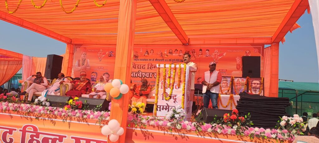दातागंज के पंचतत्वेश्वर स्वयंभू महादेव परिसर में विशाल हिंदू सम्मेलन में सनातनियों ने हुंकार भरी
