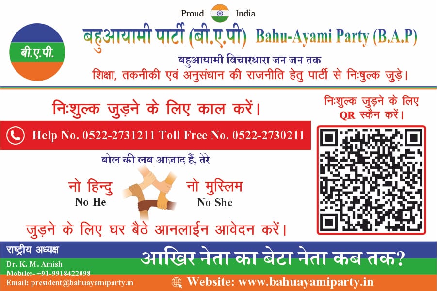 विकासवादी इंडियन पार्टी (VIP) के नेतृत्व वाले ‘VIP महामोर्चा’ में 125 से अधिक दलों के जुड़ने से जहाँ सियासी पारा चढ़ा हुआ है, वहीं बहुआयामी पार्टी (B.A.P) के समर्थन ने इस गठबंधन को एक “बौद्धिक और तकनीकी” धार दे दी है। गठबंधन में शामिल होते समय बहुआयामी पार्टी ने साफ कर दिया कि उनका मुख्य उद्देश्य केवल सत्ता हासिल करना नहीं, बल्कि शिक्षा, तकनीकी अनुसंधान (Research) और नवाचार के माध्यम से देश का नवनिर्माण करना है।
