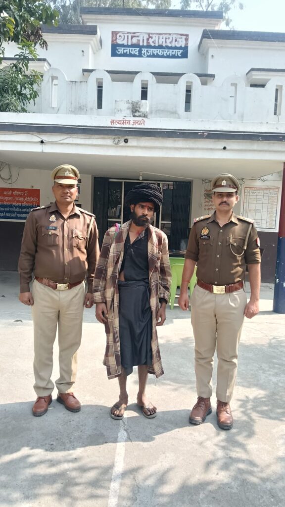 एम, डी, न्यूज़, चैनल, मुजफ्फरनगर से रूखशीद अहमद, की रिपोर्ट। मुजफ्फरनगर। थाना रामराज।वरिष्ठ पुलिस अधीक्षक जनपद मुजफ्फनगर संजय कुमार वर्मा के एंवम क्षेत्राधिकारी जानसठ रूपाली राव के निर्देशन मे, व थाना रामराज प्रभारी रवेन्द्र सिंह यादव के कुशल नेतृत्व में दिनांक 15.02.2026 को मुन्नी देवी पत्नी ऋषिपाल व अनिल पुत्र ऋषिपाल निवासी ग्राम मीरापुर खादर थाना मंडावर जिला बिजनौर से अपनी रिश्तेदारी में हस्तिनापुर आ रहे थे गंगा बैराज से गंग नहर पटरी आलमपुर नहर पुल के पास पानी पीने के लिए रुके तो वहां पर बाबा बलदेव नाथ, पुत्र अशोक नाथ, निवासी ग्राम महमूदपुर सिकेरा थाना बहसुमा ने पुत्र प्राप्ति का दिलासा देकर मुन्नी देवी को सम्मोहित कर उसकी आंखें बंद कराकर कान से कुंडल निकाल कर भाग गया वादिया मुन्नी देवी ने पुलिस को सूचना दी सूचना मिलते ही चीता पर मौजूद कांस्टेबल नितेश कुमार, व कांस्टेबल नितिन कुमार, मौके पर पहुंचे और अभियुक्त की तलाश करनी शुरू कर दी अभियुक्त बलदेव नाथ ग्राम देवल नहर पटरी पर झाड़ियां में छुपाते हुए दिखाई दिया जिसको पुलिस टीम ने गिरफ्तार कर लिया पुलिस द्वारा अभियुक्त की तलाशी लेने पर उसके पास से कानों के कुंडल बरामद किए गए। जो थाने लाकर वादियां मुन्नी देवी,को सुपुर्द कर दिए गए। थाना रामराज पुलिस द्वारा अभियुक्त के खिलाफ अग्रिम विधिक कार्यवाही की जा रही है।