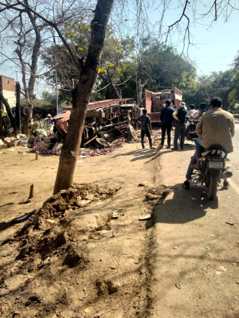 केंटर में लाखों की नमकीन भरी हुई थी ड्राइवर को झक्की लगने से हुआ बड़ा हादसा