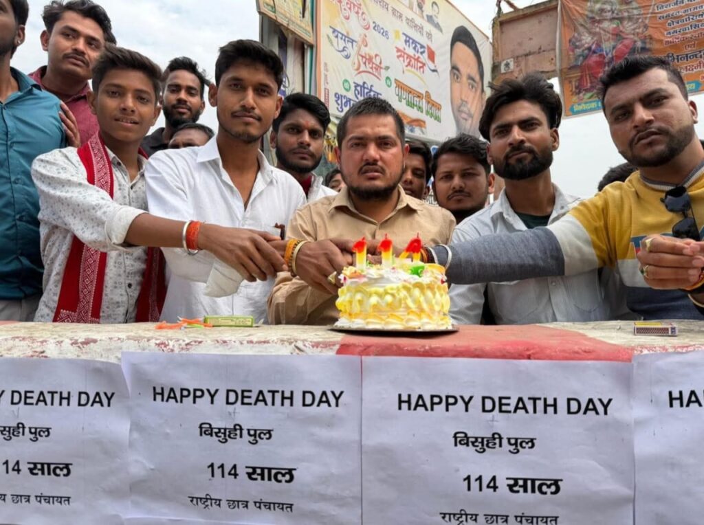 गोंडा- गोंडा जनपद में जर्जर हो चुके 114 साल पुराने बिसुही पुल के पुनर्निर्माण की मांग को लेकर राष्ट्रीय छात्र पंचायत का अनोखा विरोध प्रदर्शन जारी है। गोंडा–बलरामपुर मार्ग पर स्थित इस पुल पर प्रदर्शनकारियों ने 13वें दिन ‘हैप्पी डेथ डे’ मनाकर प्रशासन का ध्यान खींचने की कोशिश की। कार्यकर्ताओं और स्थानीय लोगों ने पुल के 114 वर्ष पूरे होने पर केक काटा और प्रतीकात्मक रूप से “हैप्पी डेथ डे टू बिसुही पुल” गाकर विरोध दर्ज कराया।