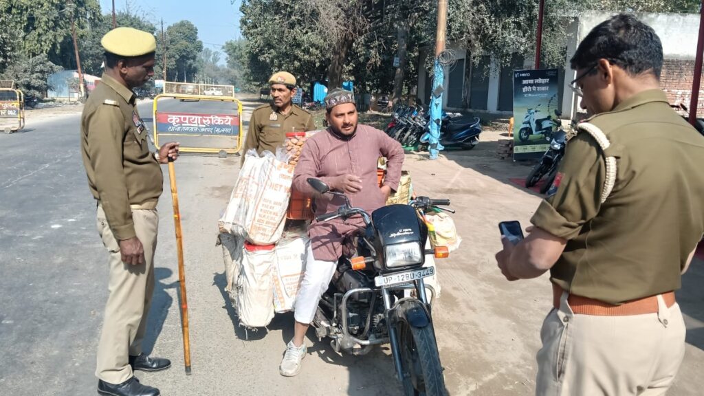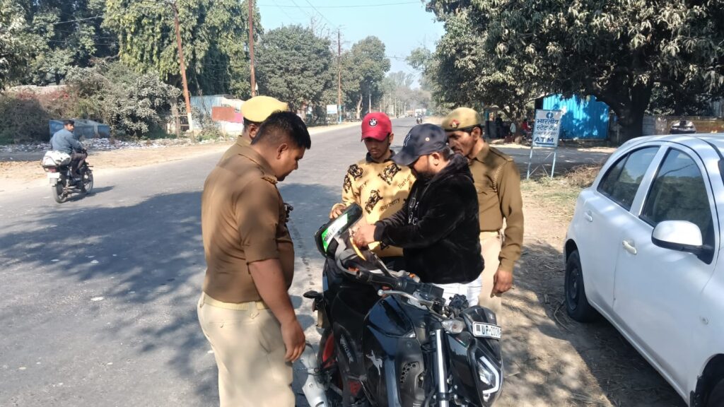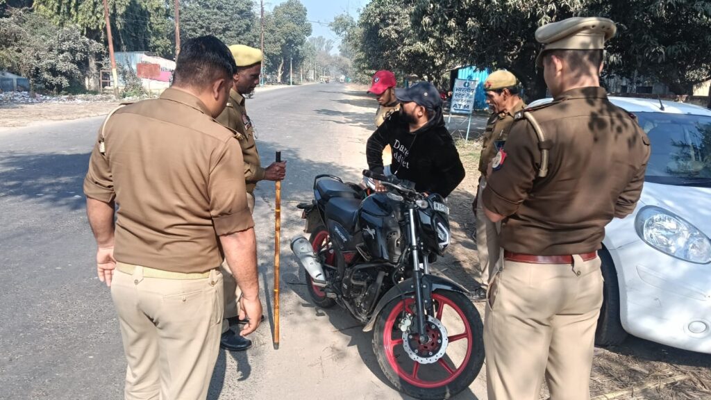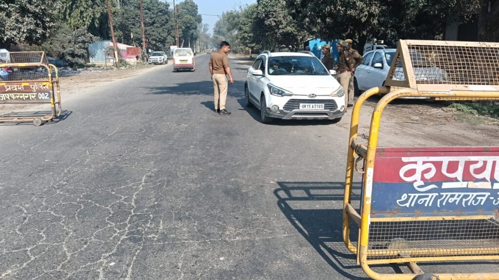 मुज़फ्फरनगर, थाना रामराज। वरिष्ठ पुलिस अधीक्षक जनपद मुजफ्फरनगर संजय कुमार वर्मा, व जानसठ क्षेत्र अधिकारी रूपाली राय, के दिशा निर्देशन में थाना रामराज प्रभारी रवेंद्र सिहं यादव, के कुशल नेतृत्व में आज दिनांक,20,02,2026, को थाना रामराज पुलिस टीम ने रामराज चौकी भारतीय स्टेट बैंक पर रामराज पुलिस टीम उप निरीक्षक जयसिंह नागर, कांस्टेबल बहादुर सिंह, कांस्टेबल सोनू सिंह, आदि ने चलाया गया चेकिंग अभियान के अंतर्गत क्षेत्र में कानून-व्यवस्था सुदृढ़ बनाए रखने, अपराध एवं अपराधियों पर प्रभावी नियंत्रण करने एवं सड़क सुरक्षा सुनिश्चित करने के उद्देश्य से रामराज पुलिस टीम ने सघन वाहन चेकिंग अभियान चलाया गया। अभियान के दौरान दोपहिया एवं चारपहिया वाहनों की गहनता से जांच की गई तथा बिना हेलमेट, बिना सीट बेल्ट, ओवरलोडिंग, ट्रिपल राइडिंग, बिना नंबर प्लेट, काली फिल्म लगे वाहन एवं अन्य यातायात नियमों का उल्लंघन करने वाले वाहन चालकों के विरुद्ध मोटर वाहन अधिनियम के अंतर्गत विधिक कार्यवाही की गई।ओर यातायात नियमों का उल्लंघन करने वालों के विरुद्ध प्रभावी एवं कठोर कार्रवाई सुनिश्चित की जाए। साथ ही आमजन को जागरूक करते हुए बताया गया कि यातायात नियमों का पालन करना प्रत्येक नागरिक की जिम्मेदारी है, जिससे सड़क दुर्घटनाओं में कमी लाई जा सके।