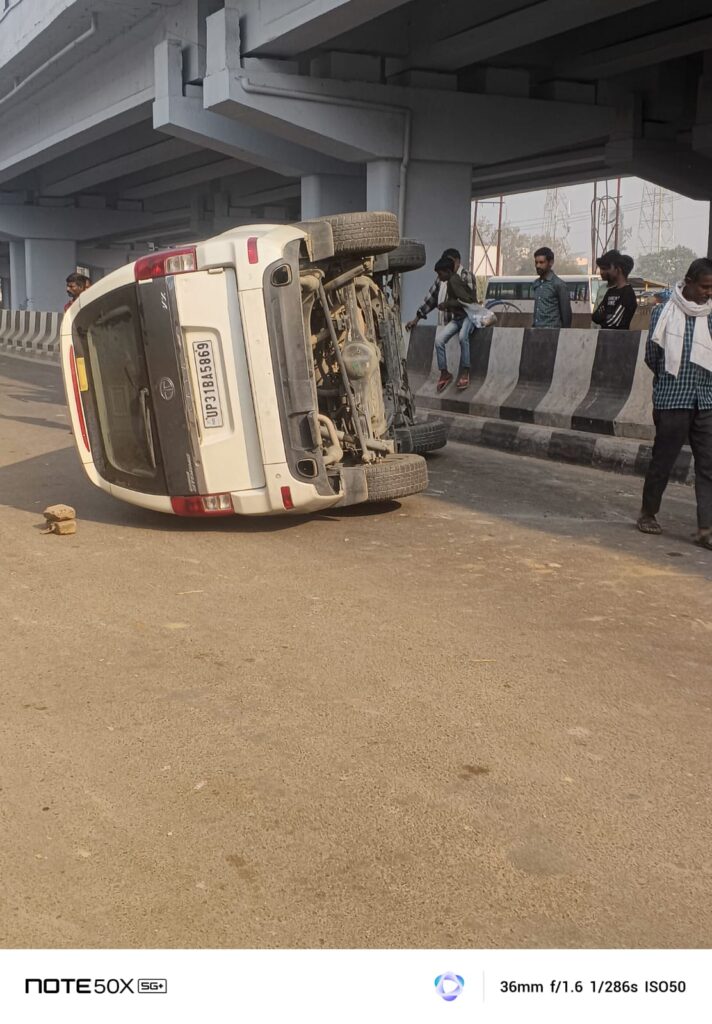 प्रत्यक्षदर्शियों के अनुसार कार काफी तेज गति में थी। जैसे ही वाहन चौराहे के पास पहुंचा, चालक नियंत्रण खो बैठा और कार डिवाइडर से टकराते हुए पलट गई। गनीमत रही कि चालक बाल-बाल बच गया। उसे हल्की चोटें आईं, लेकिन कोई जनहानि नहीं हुई।
