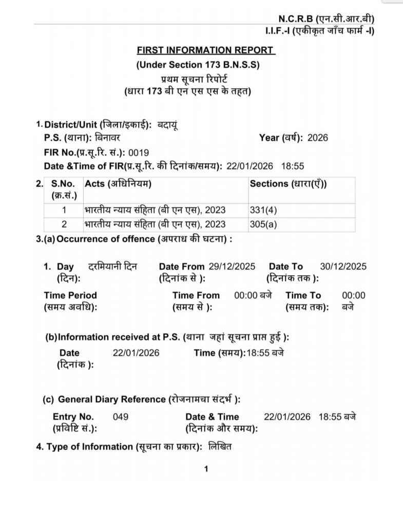 बदायूं।बता दें की थाना बिनावर क्षेत्र के गांव गुरपुरी चंदन निवासी मुजीबुल हसन ने पुलिस को शिकायती पत्र देते हुए बताया की उनका मकान गांव में बना हुआ है जिसमें धर्म कांटा कंप्यूटर इनवर्टर बैटरी एक कुंतल 10 किलो वजन के लोहे के माप बांट पीड़ित ने बताया उसी में मेंथा आयल फैक्ट्री का पुराना इलेक्ट्रॉनिक सामान रखा हुआ था जिसमें चैन मोटी वाली चेन कुप्पी भारी भारी एंगल सहित अन्य सामान भी था वह नए घर में निवास कर रह रहे थे और पुराने घर में सारा सामान भरकर ताला लगा दिया था।