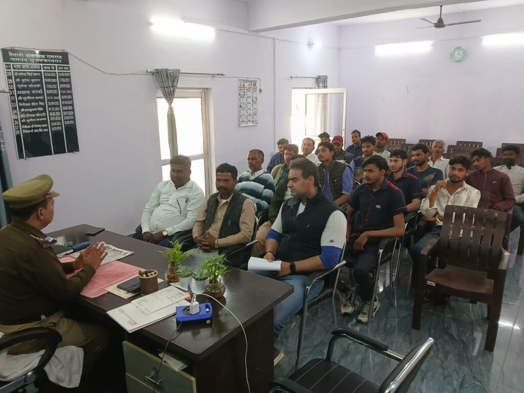 मुजफ्फरनगर। थाना रामराज।वरिष्ठ पुलिस अधीक्षक जनपद मुजफ्फनगर संजय कुमार वर्मा के एंवम क्षेत्राधिकारी जानसठ रूपाली राय चौधरी के दिशा निर्देशन मे, एंवम थाना रामराज प्रभारी रवेन्द्र सिंह यादव के कुशल नेतृत्व में आज दिनांक 24,02,2026,को थाना रामराज प्रभारी रवेंद्र सिंह यादव, ने एक मीटिंग का आयोजन किया ।