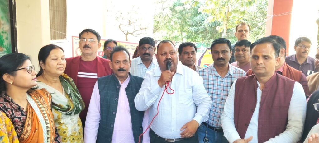 बाराबंकी: गुरुवार को बीएसए ऑफिस में पूर्व निर्धारित कार्यक्रम के अनुसार टीचर्स फेडरेशन ऑफ इंडिया के बैनर तले ज़िले भर से आए हुए शिक्षकों ने सरकार के द्वारा जबरदस्ती टेट परीक्षा के विरोध में एक दिवसीय धरना प्रदर्शन किया। शिक्षकों की मांग है कि सुप्रीम कोर्ट के 1 सितंबर 2025 के निर्णय से पूरे देश के 25 लाख शिक्षक प्रभावित हैं, शिक्षकों को जबरिया परीक्षा देने को मजबूर किया जा रहा है जबकि इन सभी शिक्षकों ने सेवा की सभी मानक को पूरा किया था।
