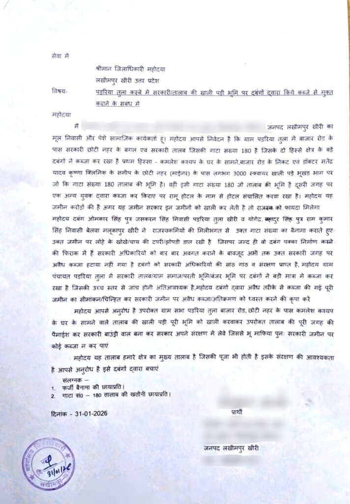 पड़रिया तुला कस्बे में ग्राम समाज की जमीन पर अवैध कब्जे का मामला तूल पकड़ता जा रहा है। ग्रामीणों का आरोप है कि दबंगों द्वारा पंचायत की जमीनों पर लगातार धड़ल्ले से कब्जा किया जा रहा है, जबकि प्रशासन मौन बना हुआ है।