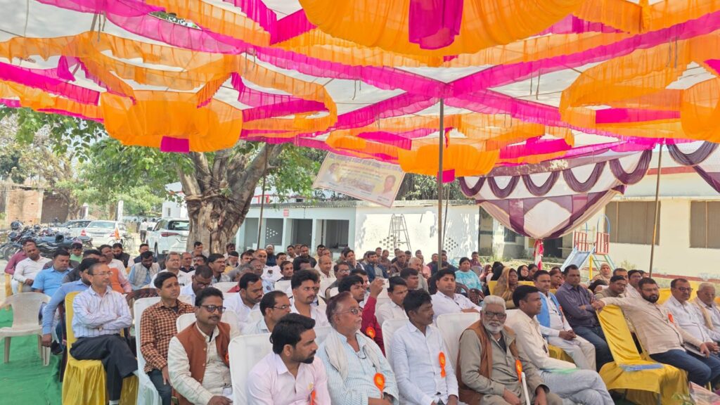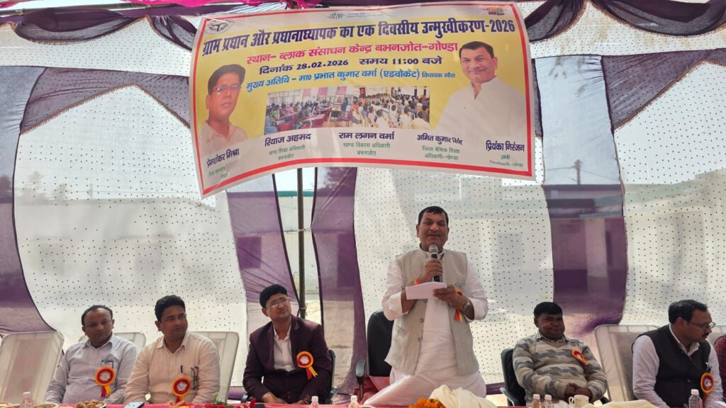 गोंडा(बभनजोत)- इस कार्यक्रम में क्षेत्रीय विधायक श्री प्रभात कुमार वर्मा द्वारा मां सरस्वती के चित्र पर पुष्प अर्पित कर औपचारिक शुभारंभ किया।अपने संबोधन में विधायक जी ने कहा कि जब तक ग्राम प्रधान एवं प्रधानाध्यापकों के बीच समन्वय स्थापित नहीं होगा, तब तक विद्यालयों का समग्र विकास संभव नहीं है। उन्होंने सरकार द्वारा परिषदीय विद्यालयों में कराए जा रहे विकास कार्यों का विस्तार से उल्लेख करते हुए प्रधानाध्यापकों से मन लगाकर कार्य करने की अपील की। साथ ही उत्कृष्ट कार्य करने वाले ग्राम प्रधानों को प्रोत्साहित भी किया।इस अवसर पर मुख्य रूप से खंड शिक्षा अधिकारी श्री रियाज अहमद, एडीओ पंचायत श्री राम विलास वर्मा, श्री घनश्याम पांडे, श्री विमलेश बहादुर सिंह, श्री दक्षराज वर्मा, श्री दिनेश वर्मा (प्रधान), श्री हकीमुल्ला, श्री बृज किशोर, श्री पप्पू मौर्य, श्री चिंटू मौर्य, श्री अरविंद शर्मा सहित भारी संख्या में ग्राम प्रधान एवं शिक्षकगण उपस्थित