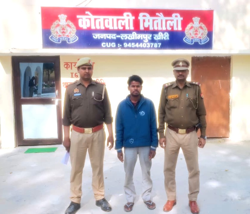 मितौली खीरी, 28 फ़रवरी 2026। पुलिस अधीक्षक खीरी डा0 ख्याति गर्ग के निर्देशन में सम्पूर्ण जनपद में अपराध एवं अपराधियों के विरुद्ध चलाये जा रहे अभियान के अंतर्गत अपर पुलिस अधीक्षक खीरी के पर्यवेक्षण व क्षेत्राधिकारी मितौली के कुशल मार्ग दर्शन तथा प्रभारी निरीक्षक मितौली महेश पाठक के नेतृत्व में कोतवाली मितौली खीरी की पुलिस टीम द्वारा चचेरे भाई को मारना पीटना, जिसकी इलाज के दौरान मृत्यु हो जाने वाले थाना मितौली के मु0अ0सं0 084/2026 धारा 105 बीएनएस के वांछित अभियुक्त अवधेश कुमार पुत्र सुन्दर लाल निवासी ग्राम ओडहरा थाना मितौली जनपद खीरी उम्र करीब 35 वर्ष को कस्ता चौराहे से गिरफ्तार कर विधिक कार्यवाही करते हुए मा0 न्यायालय के समक्ष भेजा गया ।