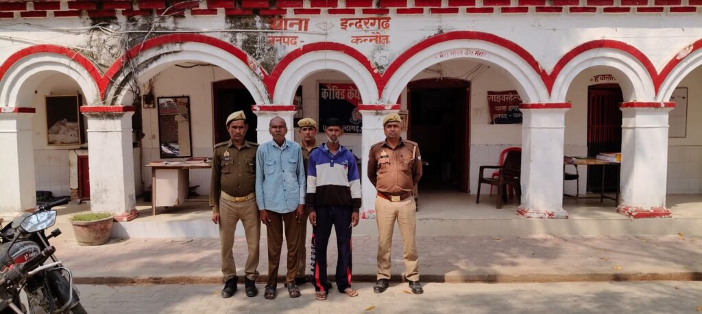 इंदरगढ़ कन्नौज /बताते चले कि पुलिस अधीक्षक कन्नौज विनोद कुमार के निर्देशन, व अपर पुलिस अधीक्षक कन्नौज अजय कुमार के मार्गदर्शन एवं क्षेत्राधिकारी तिर्वा कुलवीर सिंह के पर्यवेक्षण में वांछित वारण्टियों की गिरफ्तारी हेतु चलाये जा रहे अभियान के क्रम में थाना इन्दरगढ़ पुलिस द्वारा 02 नफर वारण्टी अभियुक्तगण 1. विनौआ उर्फ विनोद कुमार पुत्र बच्चू गिहार सम्बन्धित वाद संख्या 24983/24 अ0सं0- 117/24 धारा 60 आब0 अधि0 2.रिंकू पुत्र नन्हे गिहार सम्बन्धित वाद संख्या 5445/21 व अ0सं0 189/20 धारा 60 आबकारी अधि0 को नियमानुसार गिरफ्तार किया गया । जिसके विरुद्ध थाना स्थानीय पर अग्रिम विधिक कार्यवाही करते हुये माननीय न्यायालय के समक्ष पेश किया गया ।