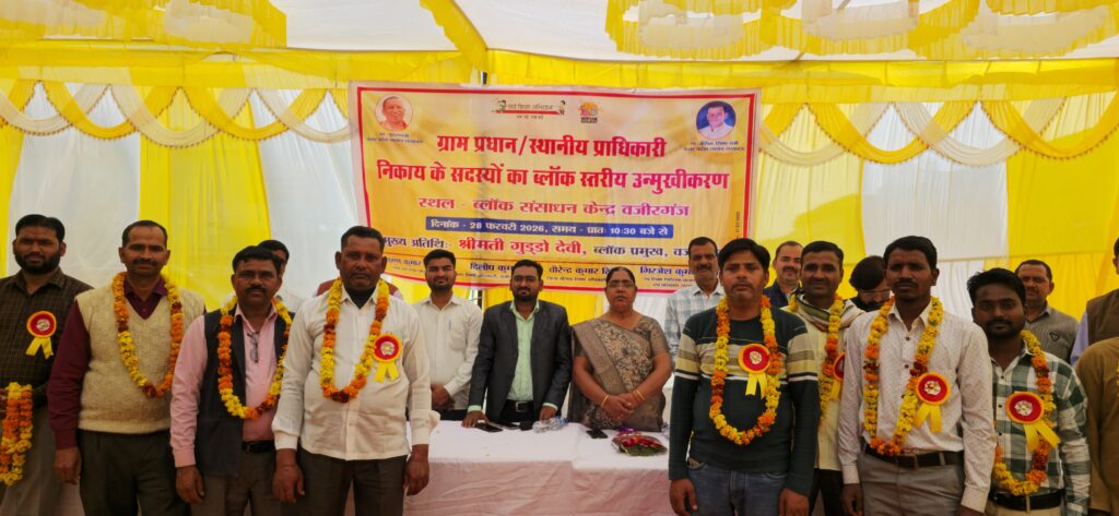 वजीरगंज(बदायूं) : ग्राम प्रधान एवं स्थानीय प्राधिकारी निकाय के ब्लॉक स्तरीय संगोष्ठी एवं उन्मुखीकरण का आयोजन ब्लॉक संसाधन केंद्र वजीरगंज पर किया गया। सर्वप्रथम मां सरस्वती पर मुख्य अतिथि ब्लॉक प्रमुख गुड्डो देवी एवं खंड शिक्षा अधिकारी दिलीप कुमार के द्वारा दीप प्रज्वलित कर कार्यक्रम का शुभारंभ किया गया। कस्तूरबा गांधी आवासीय बालिका विद्यालय की छात्राओं ने स्वागत गीत प्रस्तुत कर कार्यक्रम की शोभा बढ़ा दी। कार्यक्रम का मुख्य उद्देश प्राइमरी स्कूलों में संचालित सरकारी विभिन्न योजनाओं के प्रति जन जागरूक करना था जिसके लिए गांवों में उत्कृष्ट कार्य करने वाले ब्लॉक से आए सभी ग्राम प्रधानों को ब्लॉक प्रमुख गुड्डो देवी एवं खंड शिक्षा अधिकारी दिलीप कुमार द्वारा सम्मानित किया गया।