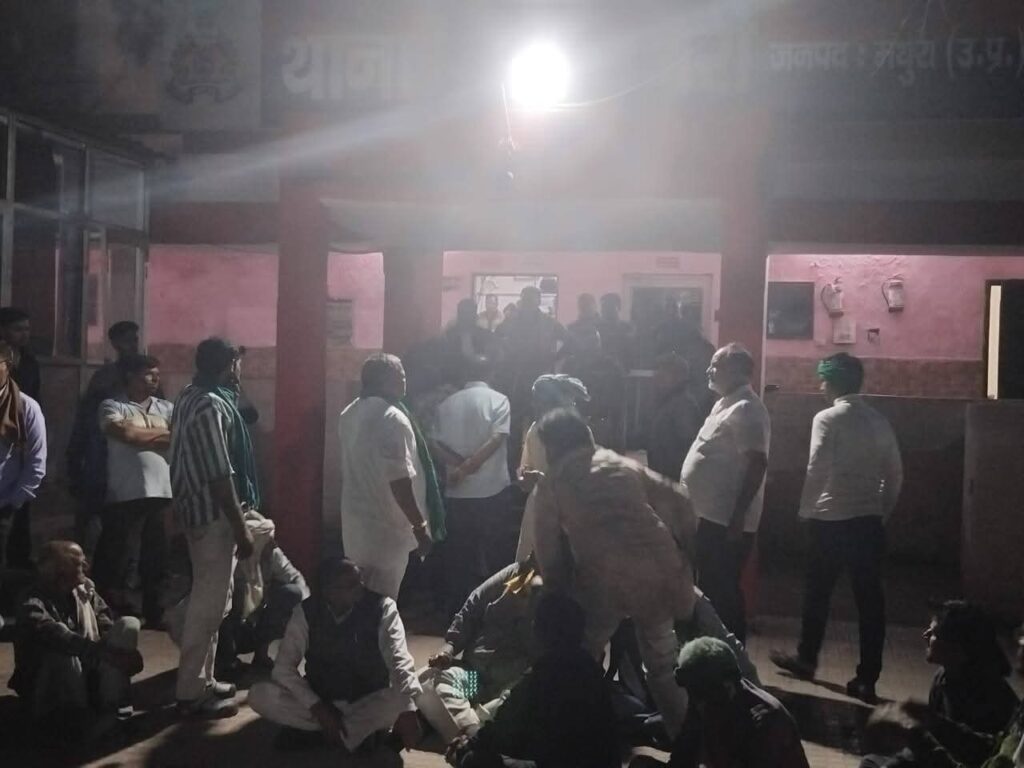 मथुरा थाना रिफाइनरी का किसान यूनियन व धाना तेजा के सैकड़ो की संख्या मे पहुँचे ग्रामीणों द्वारा घिराव मामला बताया जा रहा है गोवर्धन क्षेत्र के पूर्व विधायक ठाकुर कारिंदा सिंह के पुत्र से बीते दो सप्ताह पूर्व हुए लेन देन के मामले मे हुए झगड़े का है। जिसमे धाना तेजा के तीन युवक दिनेश पुत्र नारायण,विक्रम पुत्र बच्चू सिंह विवेक पुत्र राजपाल उपरोक्त निवासीगढ़ धना तेजा का विधायक के पुत्र जितेंद्र उर्फ जीतू से गेट नंबर 9 पर 14 फरवरी को पैसे के लेनदेन को लेकर झगड़ा हुआ था जिसमें दोनों के बीच मारपीट हुई पुलिस ने उपरोक्त तीनों युवकों को जेल भेजा था बीते 2 दिन पूर्व उपरोक्त तीनों युवा के जेल से जमानत पर रिहा होकर आए थे आज ग्रामीणों का आरोप है कि रिफाइनरी पुलिस ने उपरोक्त तीनों युवकों को फोन कर कुछ पूछता हेतु थाने पर बुलाया था जहां देर शाम तक उन्हें न छोड़ने पर पर्जन थाने पहुंचे और जानकारी की तो बताया गया कि पुलिस ने 151 में उपरोक्त तीनों युवकों का चालान कर दिया है इस पर ग्रामीण आक्रोशित हो गए और किसान यूनियन के नेता वह बड़ी संख्या में नहाना तेजी के ग्रामीण थाने पर पहुंच गए और पहुंचकर अपना विरोध प्रकट कराया परिजनों का आरोप है कि शांति भंग में यदि हमारे बच्चे जेल जाएंगे तो उपरोक्त विरोधी पार्टी के भी व्यक्तियों को जेल भेजा जाए समाचार लिखे जाने तक किसान यूनियन ग्रामीण व थाना प्रभारी के बीच वार्ता जारी हैl