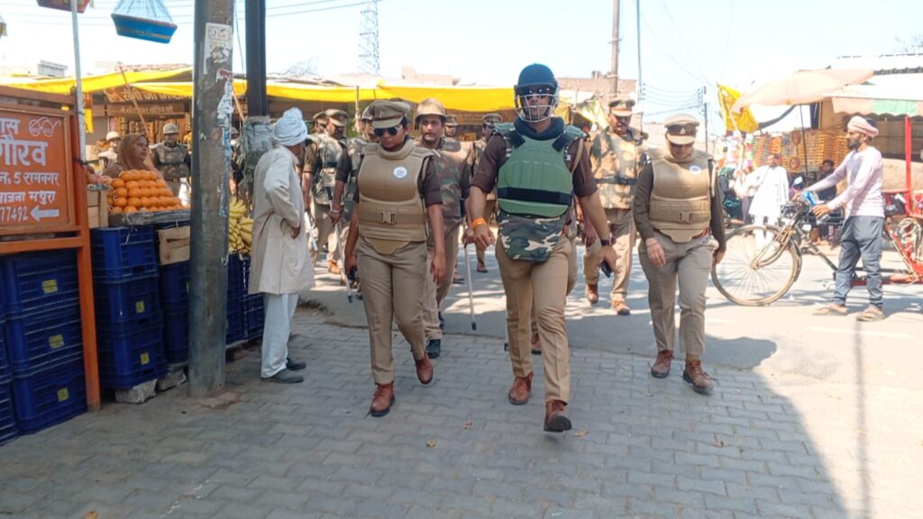 मुख्य: जनपद मथुरा के थाना नौहझील के क्षेत्र के अंतर्गत 1 मार्च 2026 दिन रविवार को शांति व्यवस्था बनाए रखने हेतु बाजना और पारसौली गांव में थाना नौहझील और समस्त स्टाफ द्वारा फ्लैग मार्च किया गया। इसके दौरान थाना अध्यक्ष सोनू कुमार के नेतृत्व में पुलिस बल ने संवेदनशील,प्रमुख चौराहों और बाजारों में पैदल गश्त कर सुरक्षित व्यवस्था का जायजा लिया ।