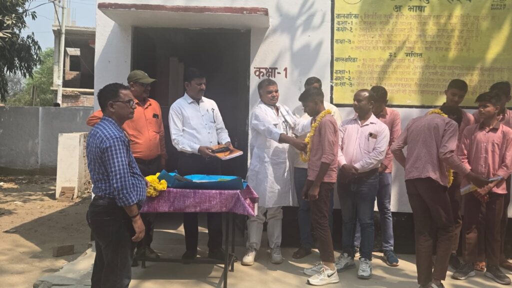 एमड़ी न्यूज़ रिपोर्टर सेवापुरी मुन्ताज अली राष्ट्रीय आय एवं योग्यता अधारित छात्रवृत्ति परीक्षा में सफल छात्रों को विद्यालय पर छात्र सम्मान समारोह आयोजित किया गया जिसमें खंड शिक्षा अधिकारी सेवापुरी संजय कुमार यादव ,ग्राम प्रधान भटौली, विद्यालय प्रबंध समिति अध्यक्ष ओमप्रकाश पटेल शामिल हुए।छात्रों को प्रेरित करते हुये खंड शिक्षा अधिकारी सेवापुरी संजय कुमार यादव ने कहा कि इस तरह के छात्रों तैयारी शिक्षक द्वारा विद्यालयों में जरुर कराया जाए। इस मुहिम को आगे बढ़ाया जाए ।इस अवसर पर छात्रों को माला पहनाकर साथ ही नोट बुक पेन देकर सम्मानित किया गया। दूसरी और इंस्पायर एवार्ड में सफल छात्र ,अंकन कुमार सिंह ,ओमप्रकाश केसरी को सम्मानित किया गया।बताते चले कि इन्सपायर एवार्ड में 10 हजार रुपये मॉडल बनाने के लिए उनके खाते में भेजा जाएगा। बतौर छत्रवृति परीक्षा में सफल छात्र को 1000 रुपये महीना 4 वर्षों तक कक्षा 9 से 12 तक पढ़ाई के लिए दिया जाएगा । वही ओंकार मिश्रा एवं श्रवण कुमार गुप्ता को माल्यार्पण कर सम्मानित किया गया। इस अवसर पर विद्यालय के प्रधानाध्यापक रमेश कुमार त्रिपाठी, नोडल शिक्षक संकुल प्रदीप कुमार शुक्ल, सहायक अध्यापक अजय कुमार सिंह, सन्ध्या राय एवं स्मृति श्रीवास्त उपस्थित रहे।