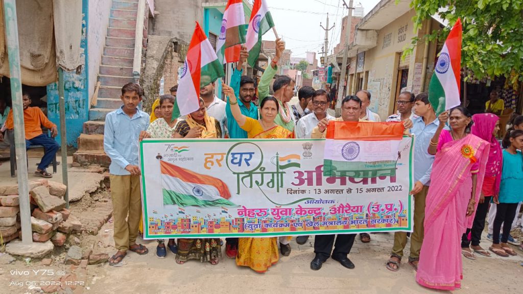 भारत सरकार के तत्वाधान में घर-घर तिरंगा कार्यक्रम औरैया जनपद के ककोर गांव पंचायत घर में संपन्न हुआ इस अवसर पर कार्यक्रम की मुख्य अतिथि विधायक गुड़िया कठेरिया की प्रतिनिधि चंद्रकांति मिश्रा भारतीय जनता पार्टी जिला उपाध्यक्ष ने कहा भारत सरकार युवाओं को बढ़ावा देने के लिए विभिन्न कार्यक्रम विभागों द्वारा संचालित कर रही है युवा इसका फायदा उठाकर लाभ लें उन्होंने कहा भारत वर्ष आजादी की 75वि वर्षगांठ अमृत महोत्सव कार्यक्रम के द्वारा मना रहा है स्वतंत्र भारत में सांस लेने वाले हर व्यक्ति को जानकारी होनी चाहिए कि देश की आजादी कैसे मिली है तमाम ज्ञात अज्ञात शहीदों ने शहादत दी है उसमें सरदार भगत सिंह चंद्रशेखर आजाद तात्या टोपे अब्दुल हमीद रानी लक्ष्मीबाई मंगल पांडे झलकारी बाई अवंती बाई सहित तमाम महिला पुरुष ने अपनी आहुति देकर हमें आजाद कराया है जिससे हम आजाद भारत में सांस ले रहे हैं अंग्रेजों की गुलामी से छुटकारा दिलाकर भारतीय संविधान में अपना जीवन यापन कर रहे हैं इसी कड़ी में जिला समन्वयक अनवर वारसी ने कहा आजादी के अमृत महोत्सव की 75 वी वर्षगांठ मना कर युवा मंडल विकास कार्यक्रम के अंतर्गत घर-घर तिरंगा कार्यक्रम का आयोजन किया जा रहा है इस कार्यक्रम से युवाओं को ज्यादा से ज्यादा जोड़कर युवा अपनी प्रतिभा को निखार कर सराहनीय कार्य में जुड़े नेहरू युवा केंद्र 75 युवा मंडलों का गठन करेगा जो युवा मंडल निष्क्रिय हैं उन्हें सक्रिय करने के लिए वह मंडल सहयोग करेंगे इस अवसर पर प्रमुख रूप से पूर्व नायब तहसीलदार सुमित पाल नरेश अग्रवाल दीपू यादव विकास दीक्षित बिंदेश्वरी प्रतिभा गौरव जागृति मिश्रा आयुष रचना सहित तमाम गणमान्य लोग उपस्थित रहे कार्यक्रम का संचालन योगाचार्य अनिल राजपूत जिला मीडिया प्रभारीभाजपा ने किया l