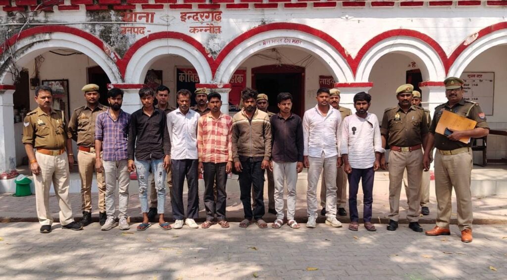 इंदरगढ़ कन्नौज /बताते चले कि पुलिस अधीक्षक कन्नौज विनोद कुमार द्वारा अपराध एवं अपराधियों के विरुद्ध चलाये जा रहे अभियान के क्रम में व अपर पुलिस अधीक्षक कन्नौज अजय कुमार के मार्गदर्शन एवं क्षेत्राधिकारी तिर्वा कुलवीर सिंह के पर्यवेक्षण में व थानाध्यक्ष नीलम सिंह के कुशल नेतृत्व में थाना इन्दरगढ टीम द्वारा मारपीट/बलवा करना व जान से मारने की नियत से फायर करने वाले 08 नफर अभियुक्तगण को 01 अदद तमंचा 315 वोर व एक अदद कारतूस जिन्दा 315 वोर व एक अदद खोखा कारतूस 315 वोर व एक अदद बुलेट कारतूस 315 वोर सहित गिरफ्तार कर किया गया सराहनीय कार्य ।