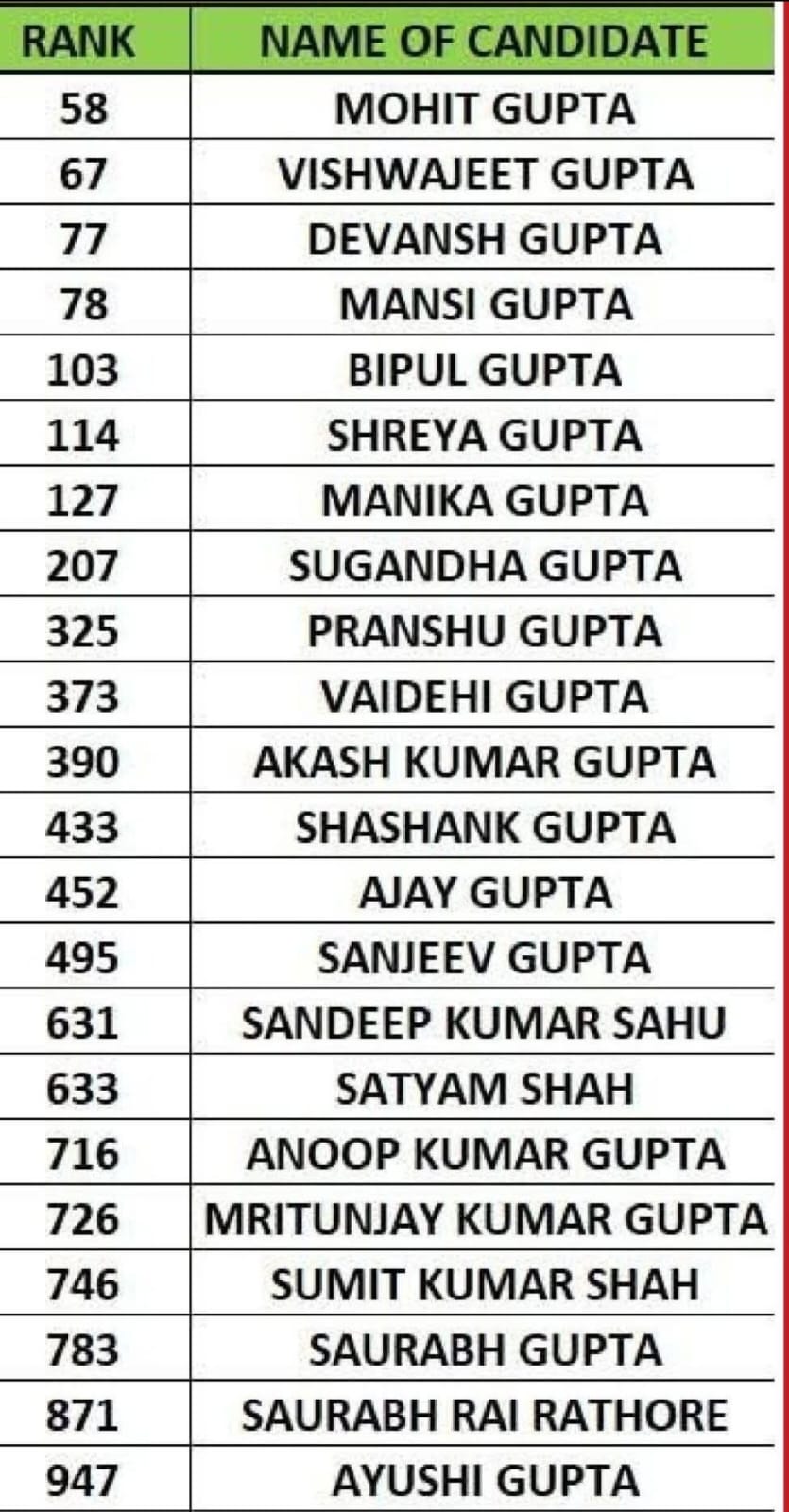 शायद ये पहला बैच है जिसमें इतनी बड़ी संख्या में तेली समाज के धुरंधरों ने परचम लहराया। बता दें की परिणाम को लेकर सभी की धड़कनें तेज थी। अब परिणाम आने के बाद लोगों में उत्साह देखने को मिल रहा है। साहू समाज के तमाम संगठनों द्वारा समाज के सफल उम्मीदवारों को बधाईयां दी जा रही है। संगठनों को आशा है की अब साहू समाज का युवा अपना लोहा मनवा रहा है। इसी के साथ हमारी भागीदारी भी बढ़ने वाली है। संगठनों ने कहा हमारे समाज के युवाओं में इतिहास रचने का हुनर है। अब तक हमारे हितों के साथ खिलवाड़ किया गया है। हमें वंचित किया गया, लेकिन अब हमारे समाज के युवाओं ने ठान लिया है, और इतिहास बनाना है। हमारा समाज जाग चुका है। संगठनों का मानना है की इतनी संख्या में समाज के युवाओं का सफल होना कहीं न कहीं समाज को मजबूती देगा।