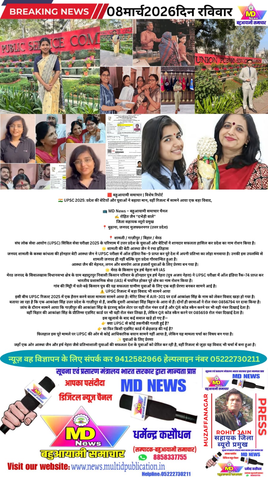 जहाँ एक ओर आस्था जैन और हर्ष नेहरा जैसे प्रतिभाशाली युवाओं की सफलता देश के युवाओं को प्रेरित कर रही है, वहीं रिजल्ट से जुड़ा यह विवाद भी चर्चा में बना हुआ है।