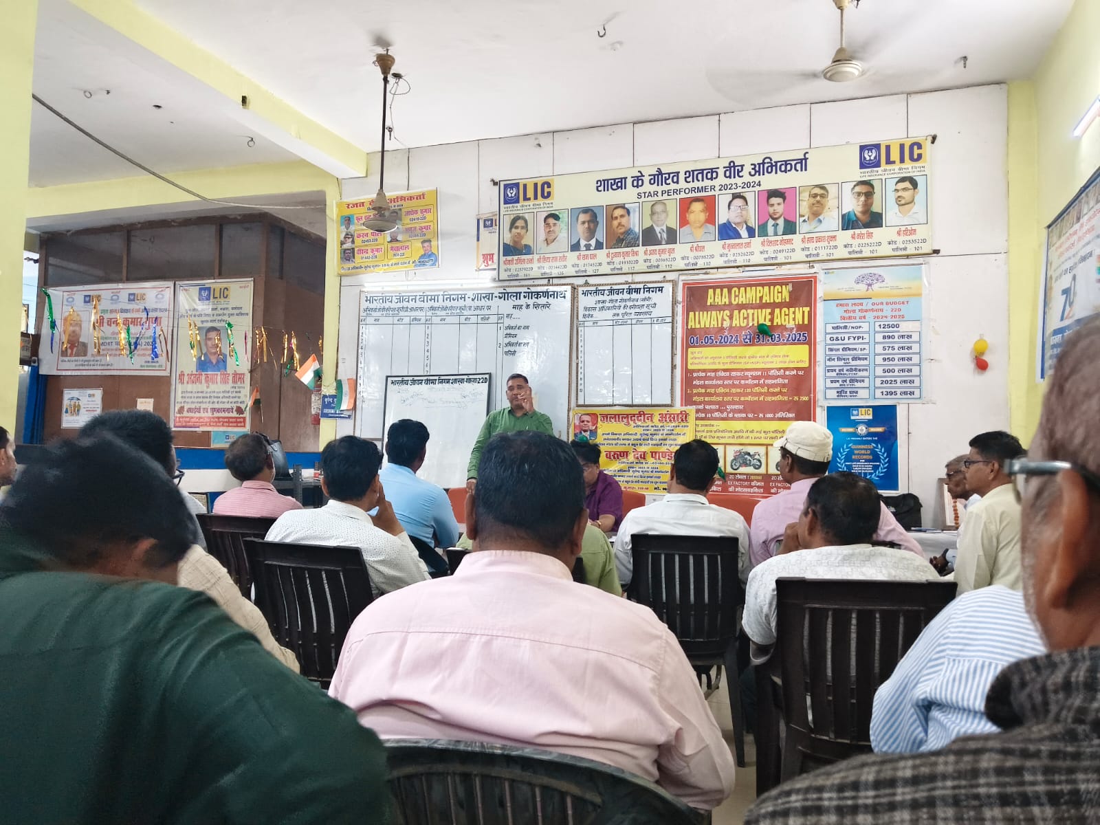 आज उत्तर प्रदेश के गोला गोकर्णनाथ में भारतीय जीवन बीमा निगम की शाखा में मीटिंग कार्यालय में की गई जिसको मुख्य ज्ञान दाता राजकुमार शाखा प्रबंधक गोला गोकर्णनाथ के द्वारा मार्गदर्शन दिया गया और विकास वाहिनी के विकास अधिकारी ए के सिंह तोमर जी के द्वारा ज्ञानवर्धक सामग्री एवं आने वाली बीमा विक्रय में जो समस्या होती है उन पर विस्तृत रूप से चर्चा की गई ।