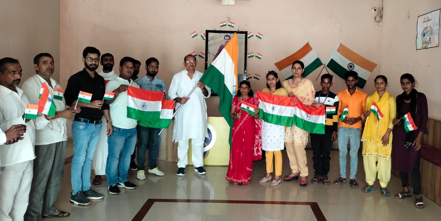 सहसवान : डी .पी स्नातकोत्तर महाविद्यालय में आजादी का अमृत महोत्सव कार्यक्रम के अन्तर्गत “हर घर तिरंगा” अभियान में जोरदार तैयारी के साथ सैल्फी प्वाइंट बनाया जिसका उद्घाटन महाविद्यालय के संस्थापक श्री डी. पी यादव जी के कर कमलों द्वारा किया गया साथ ही तिरंगा यात्रा का शुभारंभ करते हुए संस्थापक श्री डी. पी यादव जी ने विद्यार्थियों को देशभक्ति का जज्बा भरते हुए तिरंगे के प्रति दायित्व से परिचय करवाया व तिरंगा हाथ में लेकर देश के प्रति भक्ति भावना भरते हुए भारत माता को नमन किया और हर घर तिरंगा होने के लिए विद्यार्थियों में वितरित करने हेतु महाविद्यालय की प्राचार्या डॉ. शुभ्रा माहेश्वरी को तिरंगे भेंट किये।
