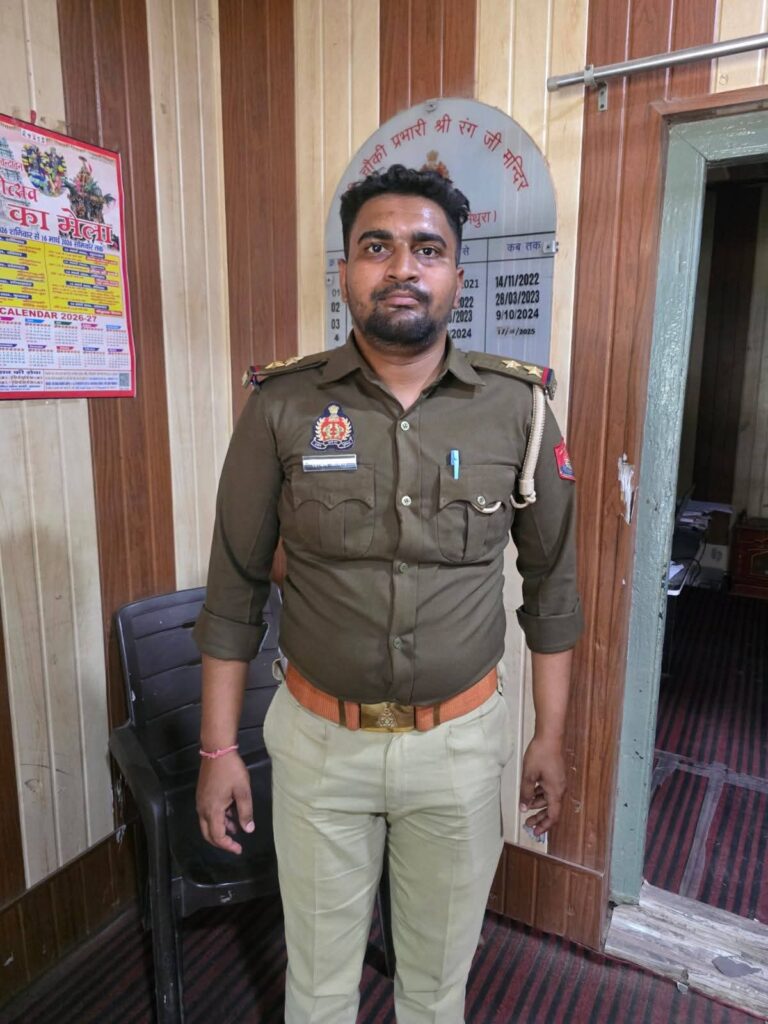 जनपद मथुरा के वृन्दावन में श्री रंगनाथ मंदिर के ब्रह्मोत्सव के अंतर्गत आयोजित प्रसिद्द रथ के मेला से पुलिस ने एक फर्जी दरोगा को पकड़ा है, प्राथमिक जानकारी के अनुसार सब इंस्पेक्टर की वर्दी पहने युवक मेले में लोगों पर रौब गांठ रहा था, शक होने पर पुलिस ने इसे धर लिया। बताया जाता है कि स्वयं की बुलंदशहर में तैनाती और हाथरस का रहने वाला बताया गया है। फर्जी दारोगा को हिरासत में लेकर पुलिस द्वारा पूछताछ के साथ मामले की जांच की जा रही हैं