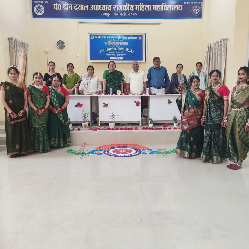 सेवापुरी, । पं दीनदयाल उपाध्याय राजकीय महिला महाविद्यालय सेवापुरी में रविवार को राष्ट्रीय सेवा योजना का सप्त दिवसीय शिविर महाविद्यालय के अहिल्याबाई होलकर सभागार में गणेश वंदना, मिथिला का पारम्परिक नृत्य झिझिया, बेटी पढ़ाओ एवं नारी सशक्तिकरण की प्रस्तुतियों के साथ सम्पन्न हुआ।