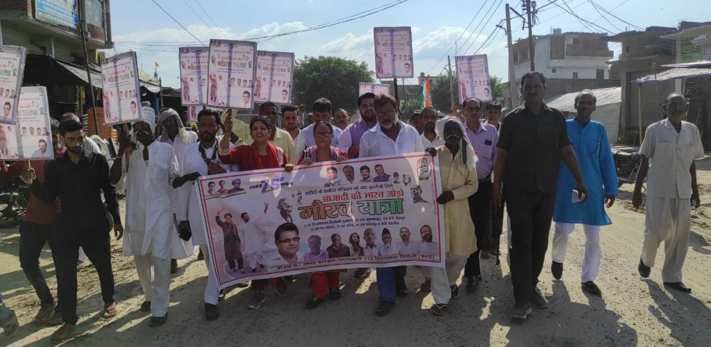 बिसौली : आसफपुर से कांग्रेसियों ने आजादी की गौरव यात्रा प्रदेश महासचिव कुमुद गंगवार के निर्देशन में व जिलाध्यक्ष ओमकार सिंह के नेतृत्व में यात्रा का शुभारंभ किया गया।