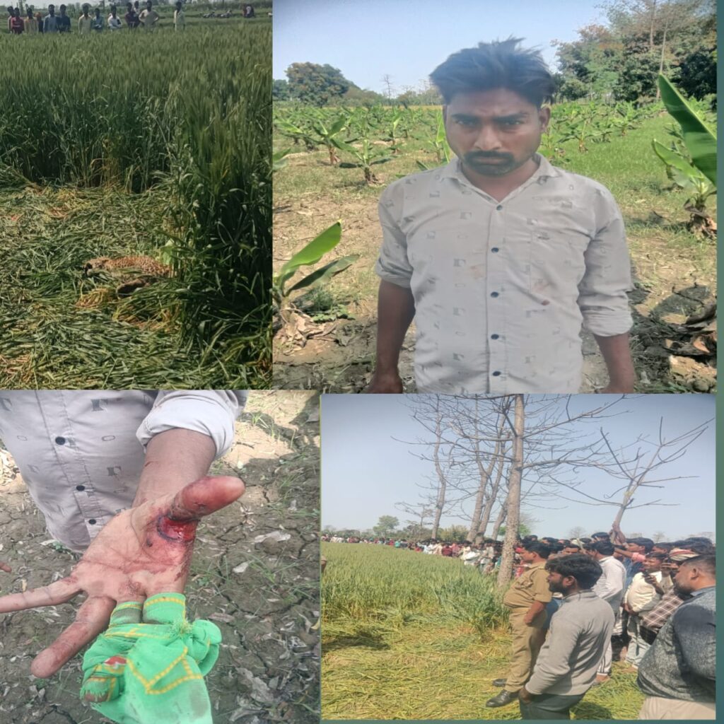 अंकुर द्वारा खेत में बांधे गए तेंदुए को पकड़ती वन विभाग की टीम।जानकारी के अनुसार, देवी पुरवा गांव निवासी अंकुल भार्गव आयु लगभग 30 वर्ष है वह अपने खेत पर किसी व्यक्ति को बुलाने गए थे। इसी दौरान गेहूं के खेत की ओर से उन्हें किसी जानवर के गुर्राने की आवाज सुनाई दी। जब वह आवाज की दिशा में आगे बढ़े तो सामने एक तेंदुआ खड़ा दिखाई दिया। इससे पहले कि वह कुछ समझ पाते, तेंदुए ने उन पर हमला कर दिया। अंकुर बहुत जोर से चिल्लाया और गांव वालों को बुलाने लगा कि हमको बचा लो हमें तेंदुआ खाया जा रहा है। वही तुरंत मौके पर ग्रामीण ग्रामीण पहुंचकर अंकुर की जान बचाई और तेंदुआ रस्सी से बांधा गया।ग्रामीणों ने तुरंत वन विभाग को सूचना दी। सूचना मिलते ही वन विभाग की टीम मौके पर पहुंची और तेंदुए को सुरक्षित कब्जे में लेने की कार्रवाई शुरू कर दी। वहीं, घायल अंकुल को प्राथमिक उपचार के बाद अस्पताल भेजा गया, जहां उनका इलाज जारी है। ग्रामीणों में दर्शन का माहौल बना हुआ है ग्रामीण बताते हैं दो तेंदुआ और है वन विभाग के लापरवाही के चलते आए दिन तेंदुए अटैक करते हैं।बताया जा रहा है कि बीते एक माह में धौरहरा वन रेंज में यह तीसरा तेंदुआ है, जिसे वन विभाग ने पकड़ा है। अधिकारियों ने लोगों से अपील की है कि जंगली जानवर दिखने पर स्वयं जोखिम न उठाएं और तुरंत विभाग को सूचित करें।