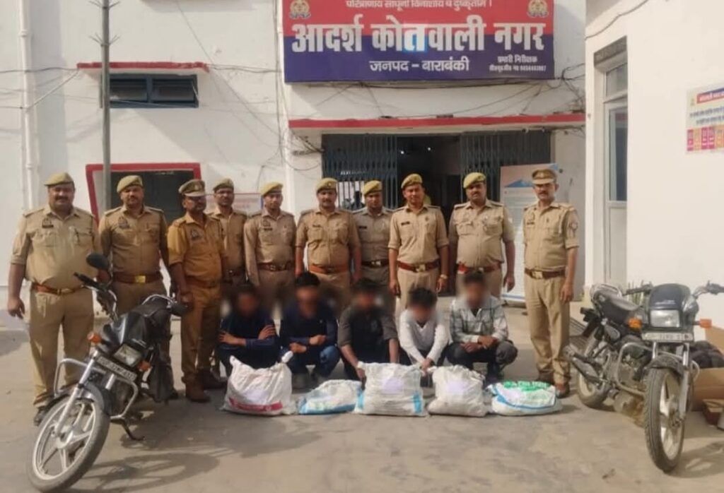 उत्तर प्रदेश बाराबंकी पुलिस अधीक्षक बाराबंकी श्री अर्पित विजयवर्गीय द्वारा जनपद में अपराध पर प्रभावी नियंत्रण लगाने हेतु अपराधियों के विरुद्ध चलाये जा रहे अभियान के क्रम में अपर पुलिस अधीक्षक उत्तरी श्री विकास चन्द्र त्रिपाठी के निर्देशन व क्षेत्राधिकारी नगर श्री संगम कुमार के पर्यवेक्षण में थाना कोतवाली नगर पुलिस टीम द्वारा मैनुअल इंटेलीजेन्स एवं डिजिटल डेटा की मदद से घटना का अनावरण करते हुए आज दिनांक 17.03.2026 अभियुक्तगण 1. अभिषेक यादव पुत्र बेचालाल निवासी ग्राम धौरहरा थाना गोसाईगंज जनपद लखनऊ, 2. सचिन कश्यप पुत्र मुन्ना कश्यप निवासी ग्राम धौरहरा थाना गोसाईगंज जनपद लखनऊ, 3. साजन सिंह यादव पुत्र पृथ्वीराज सिंह यादव निवासी ग्राम धौरहरा थाना गोसाईगंज जनपद लखनऊ, 4. रितेश यादव पुत्र दिनेश कुमार निवासी ग्राम धौरहरा थाना गोसाईगंज जनपद लखनऊ, 5. अभिषेक यादव पुत्र बनवारी यादव निवासी ग्राम धौरहरा थाना गोसाईगंज जनपद लखनऊ को हैदरगढ़ रोड, मक्का दास कुटी बड़ेल के पास से गिरफ्तार किया गया। अभियुक्तगण के कब्जे से बिजली के उपकरण 31 एम0सी0बी0, बिजली के स्विचयुक्त बोर्ड, शॉकेट, 26 अदद रेगुलेटर, 06 फैन कवर तथा प्लास्टिक की बोरी में 31.500 कि०ग्रा० बिजली का तार, 27.700 कि०ग्रा० कॉपर का छिला हुआ तार, 31 कि०ग्रा० एल्मुनियम का छिला हुआ तार व अन्य प्लम्बरिंग का सामान 38 कि0ग्रा0 बरामद किया गया तथा घटना में प्रयुक्त दो अदद पेचकश, दो अदद मोटरसाइकिल UP 32 MP 6927, UP 32 RB 9180 बरामद किया गया। पूछताछ एवं जांच से ज्ञात हुआ कि अभियुक्तगण द्वारा अपने अन्य साथियों के साथ मिलकर पैसा कमाने के उद्देश्य से चोरी, जैसे अवैध क्रिया-कलापों से धनोपार्जन कर अपराध कारित करते है। अभियुक्तगणों द्वारा कोतवाली नगर बड़ेल क्षेत्रान्तर्गत आस-पास अलग अलग स्थानों पर निर्माणाधीन मकानों से बिजली का सामान तथा बिजली के तारों को चुराया जाता है। तथा चोरी के बिजली उपकरणों को बेचकर धनोपार्जन किया जाता है। जिस संबंध में थाना कोतवाली नगर में क्रमशः मु0अ0सं0 186/2026 धारा 305(a)/317(2) बीएनएस, मु0अ0सं0 196/2026 धारा 305(a)/317(2) बीएनएस, मु0अ0सं0 122/2026 धारा 305(a)/317(2) बीएनएस तथा मु0अ0सं0 592/2025 धारा 305(a)/317(2) बीएनएस पंजीकृत है।