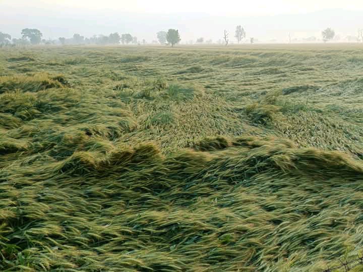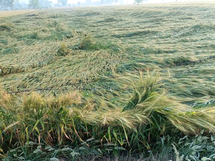 नौहझील। जनपद मथुरा के कस्बा बाजना से 6 किमी दूर नौहझील में बुधवार देर शाम आई तेज आंधी और बारिश के साथ मौसम का मिजाज बदला। बुधवार को देर शाम दिल्ली NCR, नोएडा, मथुरा,आगरा, हाथरस, अलीगढ़ सहित अन्य कई जिलों में मौसम सुहाना हुआ।अचानक मौसम ने करवट बदल लिया है. पहले धूल भरी आंधी के बाद शहर और आसपास के कई इलाकों में झमाझम बारिश हुई।तेज आंधी और बारिश के चलते नौहझील क्षेत्र के गांव, हसनपुर, बाजना, मानागढ़ी, सींगोंनी, मुश्मना, फिरोजपुर, रायपुर, रामगढ़ी,आदि गांव के खेतों में खड़ी पकी गेहूं की फसल, सरसों, जैसी फसलों में भारी नुकसान दिखाई दिया है।