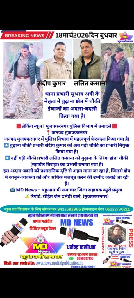 वहीं गढ़ी चौकी प्रभारी ललित कसाना को बुढ़ाना के तिरंगा झंडा चौकी (महावीर तिराहा) की जिम्मेदारी सौंपी गई है।